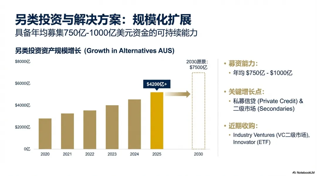 高盛把资源更集中地投向AWM,并通过收购与合作补齐能力拼图:例如布局风险投资二级市场平台、收购创新型ETF提供商,同时与大型资管机构合作开发退休与财富管理产品。