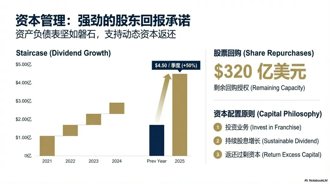 八、真金白银的信号:增加股息,回购授权320亿美元