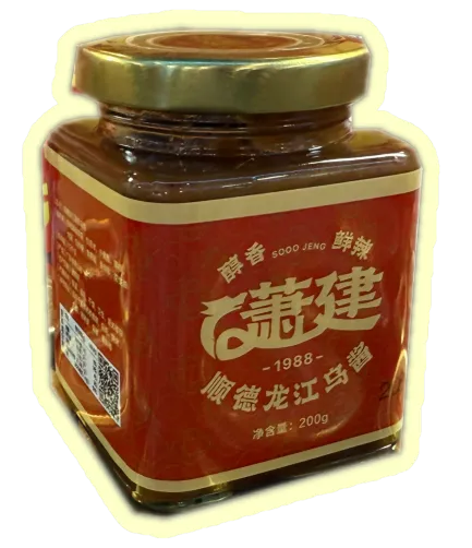 龙江乌酱起源于宋朝,至今有400年历史,其中以顺德龙江乌酱最为出名;萧建乌酱创始于1988年,由顺德龙江萧建创立,至今传承了38年。萧建乌酱味道是入口先是咸中带甜,甜中带有黄豆的鲜味,然后辣味会逐渐释放,层次丰富,(鲜味来自于熬制黄豆的水,没有添加化学成分)