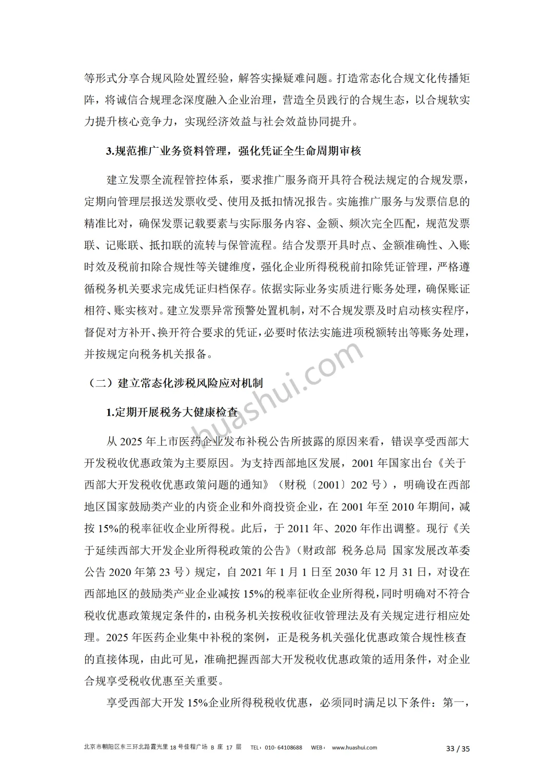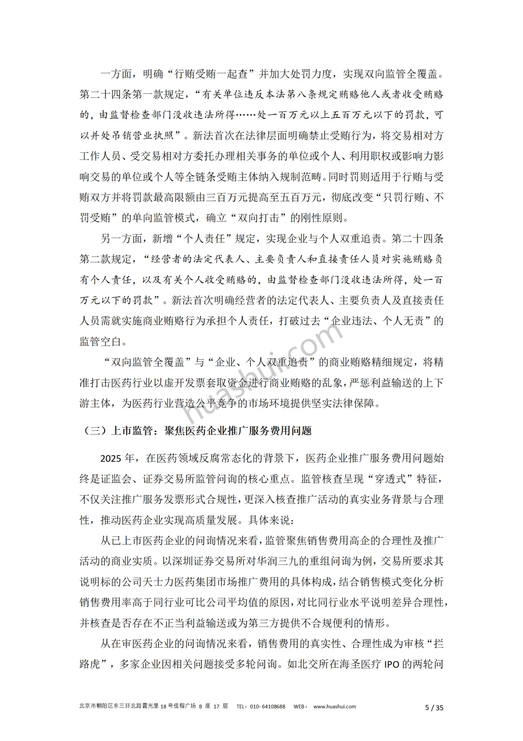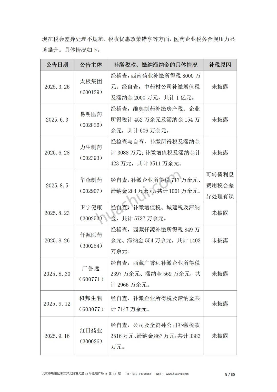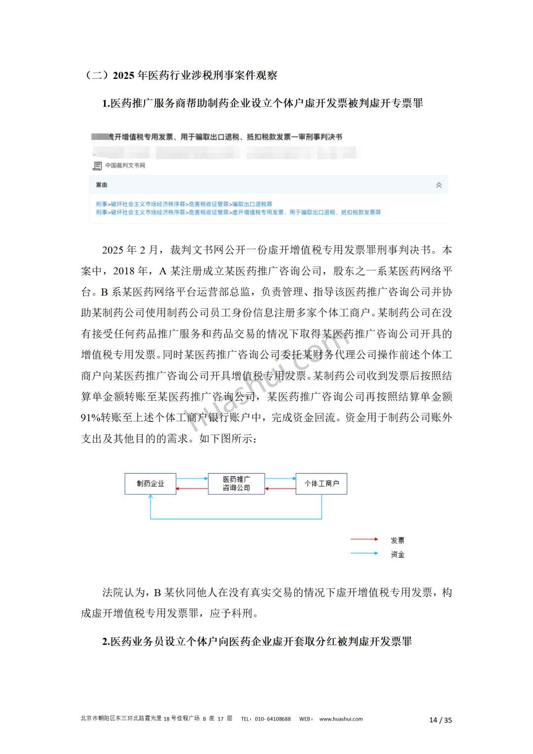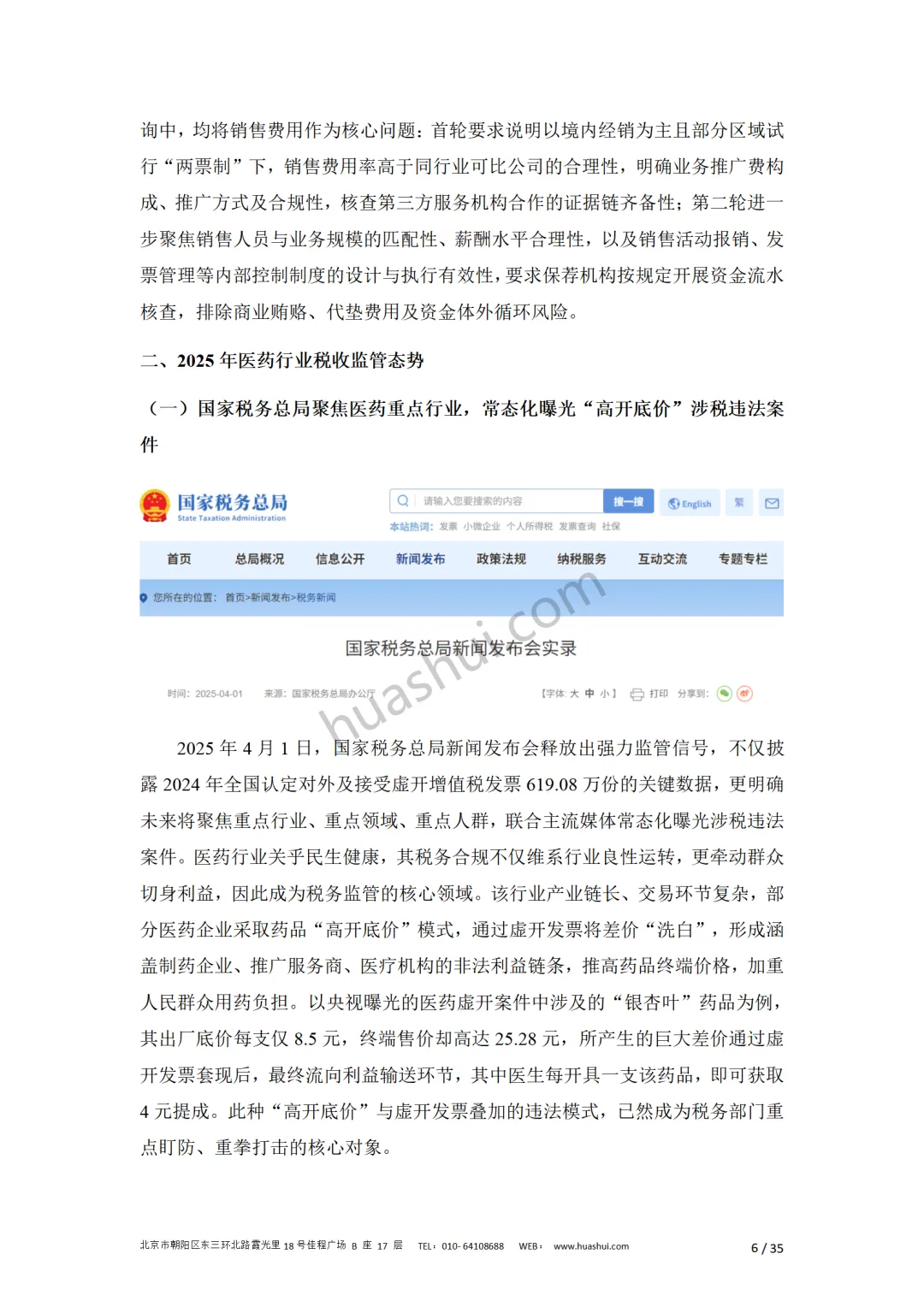 医药行业税务风险与商业贿赂息息相关,呈现虚开违法行为与商业贿赂交织共生的典型业态特征,具有鲜明的行业特殊性。2025年,监管层面纵深推进医药反腐工作,中纪委、卫健委、市监局等多部门协同发力,明确将商业贿赂列为重点打击范畴,以“行贿受贿一起查、双向追责”的监管模式,持续从严查处医药行业违法违规行为;证交所与证监会聚焦上市医药企业推广服务的真实性与合理性,通过监管问询与核查,构建全方位监管防线。