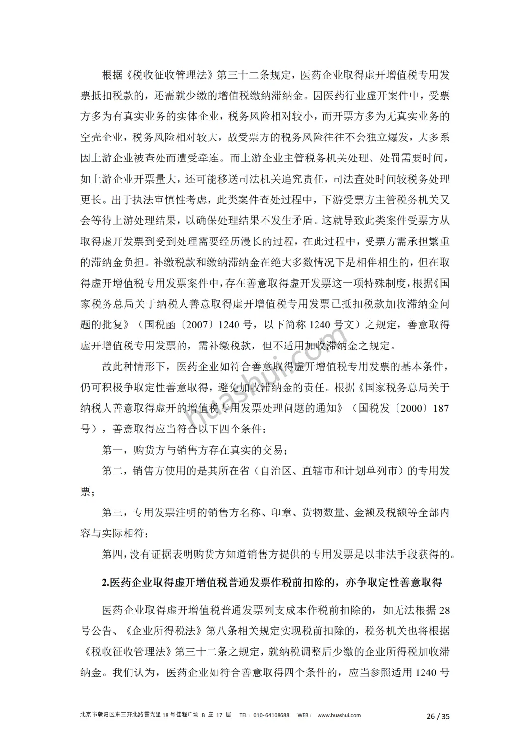 随着国家对医药行业商业贿赂问题整治力度不断升级,税务机关对医药企业涉税违法行为的查处力度也持续加码。2025年,诸多上市医药企业陆续发布大额补税公告;部分医药企业法定代表人因企业欠税问题被依法限制出境;多起虚开、偷逃税款案件接连曝光,相关主体面临补缴税款、缴纳滞纳金及罚款的税务行政风险,甚至还需承担虚开犯罪的刑事责任,医药行业合规压力显著攀升。在此背景下,医药企业事前如何做好税务合规,防范潜在的涉税风险,事后如何有效举证与抗辩,应对已爆发的涉税风险,已成为关乎行业持续健康发展的关键议题。