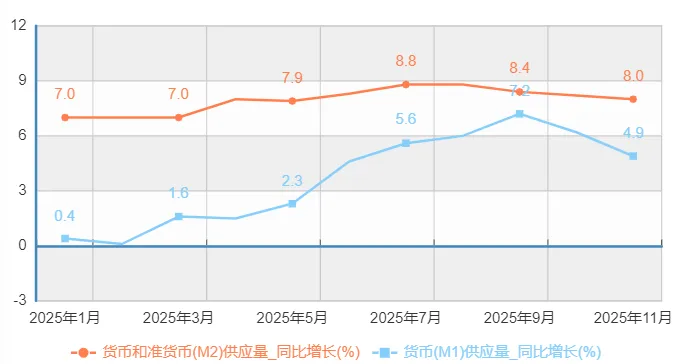 M2代表存钱,M1代表消费,从数据可以看出,2025全年,M2增速一直远高于GDP增速,也一直高于M1增速。说明25年能赚钱的人和企业,他们并没有投资或者消费,而是一直在拼命储蓄。哪怕股市这么好,也未见有明显的“储蓄搬家”效应。