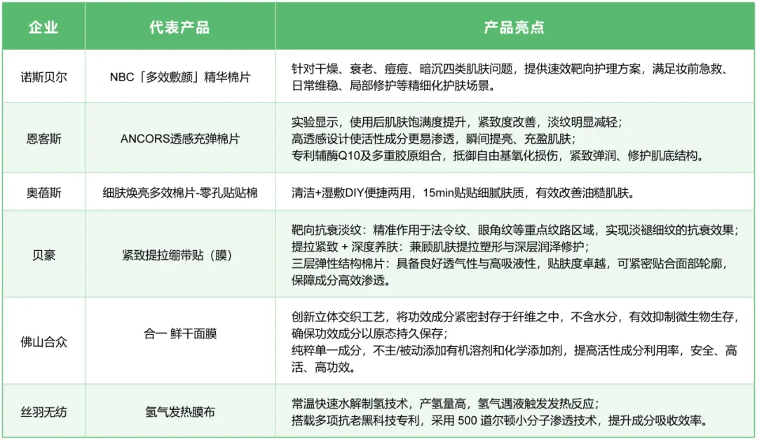 诸如诺斯贝尔、恩客斯、奥蓓斯等国内知名OEM企业,2026年均有力推的棉片产品。其中,诺斯贝尔的“NBC「多效敷颜」精华棉片”可满足妆前急救、日常维稳、局部修护等精细化护肤场景;恩客斯的“ANCORS透感充弹棉片”专为快节奏生活和追求高效护肤的人群设计,兼顾清爽体验与多效护理;奥蓓斯的“细肤焕亮多效棉片-零孔贴贴棉”,则可实现清洁+湿敷DIY便捷两用,有效改善油糙肌肤。