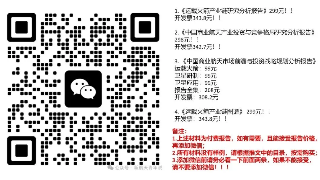 如果需要获取本报告,可扫描下方二维码购买,备注:《中国商业航天产业投资与竞争格局研究分析报告》。