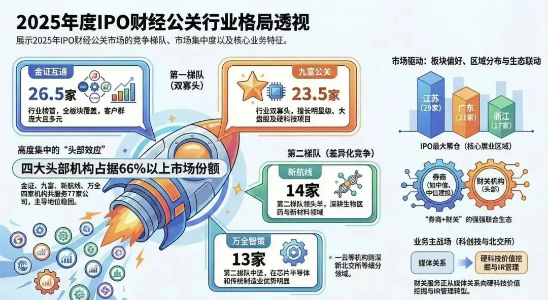 根据2025年度116家新上市公司的统计数据,财经公关行业呈现出显著的头部集中趋势,形成了“两超多强”的市场格局。