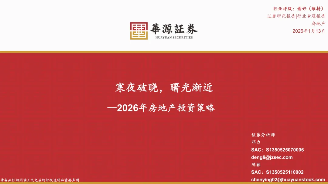 证券研究报告:寒夜破晓,曙光渐近——2026年房地产投资策略