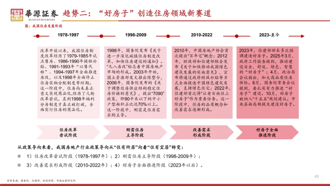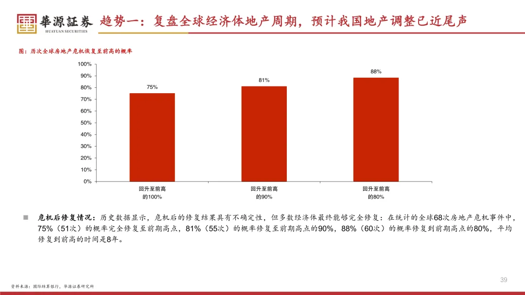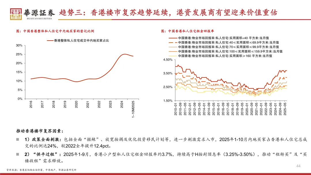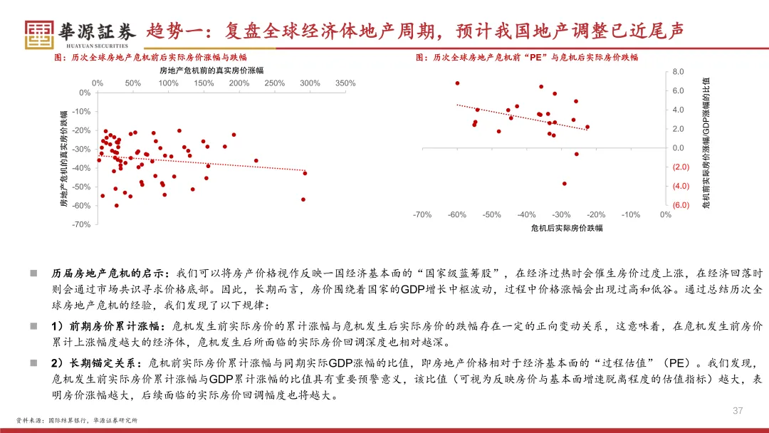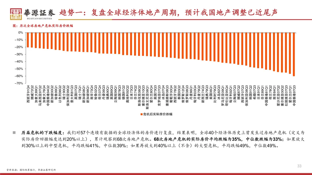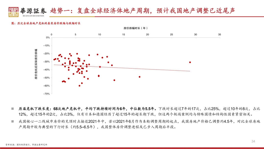 行业展望:我们认为,2026年,三大趋势值得期待:1)房地产调整周期有望进入尾声:参考全球68次房地产危机的历史经验,样本历史平均跌幅35%,平均调整时间6年,当前我国实际房价调整的长度与深度均已相对充分。更重要的是,2006-2021年中国房地产的上行周期中实际房价涨幅与同期实际人均GDP 增速基本匹配,显示房地产价格上涨与经济扩张相协调,整体风险或低于普遍认知。2)“好房子”趋势:当前房地产行业政策导向已完成从“住有所居”向“住有宜居”的根本性转变。中央层面自2023年起高频强调建设安全、舒适、绿色、智慧的“好房子”,政策推动和供需结构的升级意味着后续高品质住宅市场或将迎来较大的发展空间。3)香港楼市复苏延续:考虑美联储降息周期、“供平过租”激发的刚性及投资需求释放,以及人口回流提供的刚性需求等多重积极因素支撑,预计2026年香港一手私人住宅市场成交量与成交价格或将进一步回升。