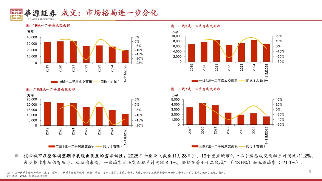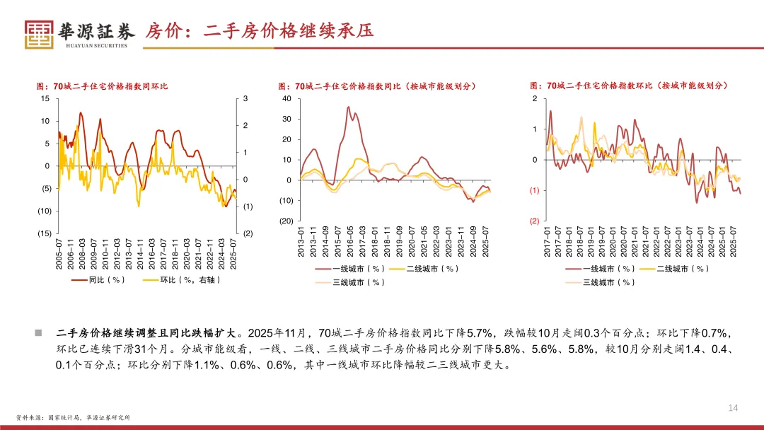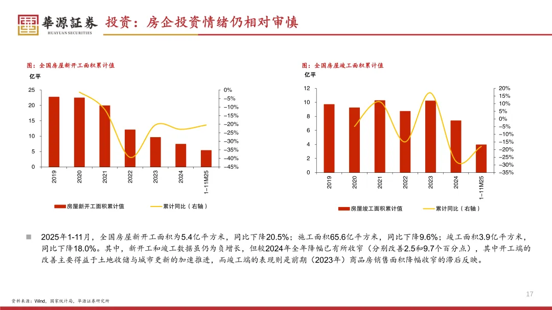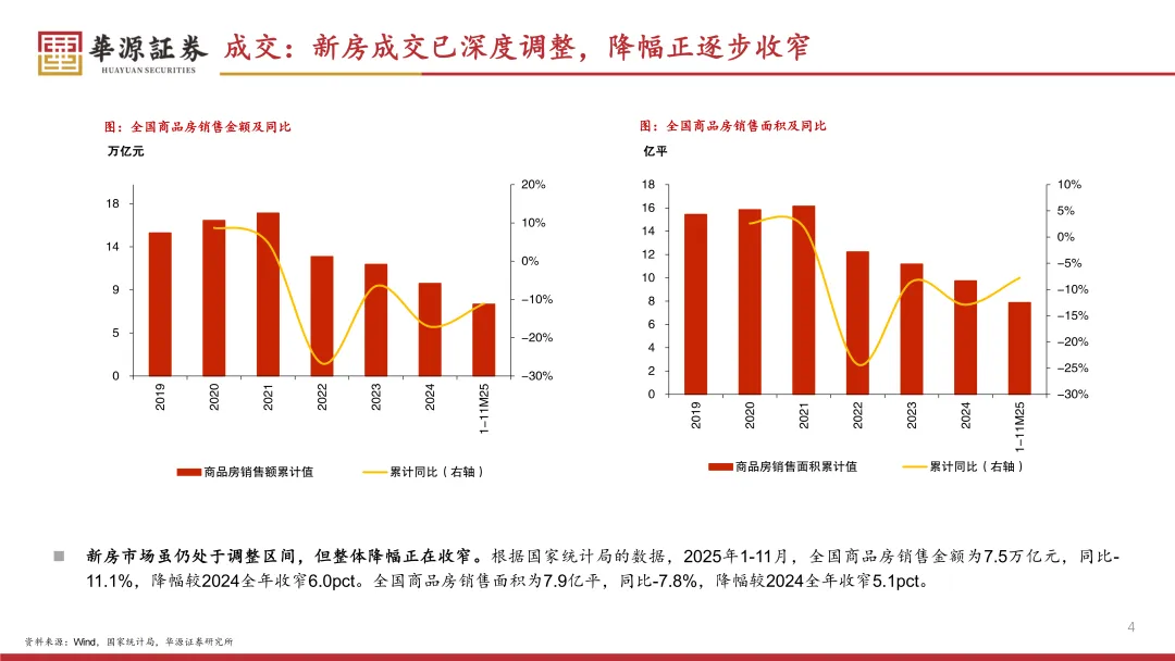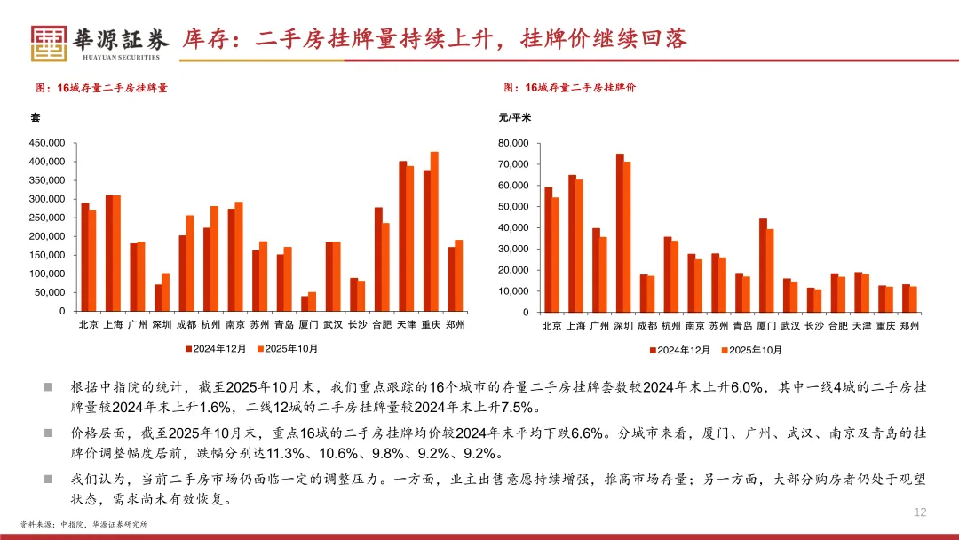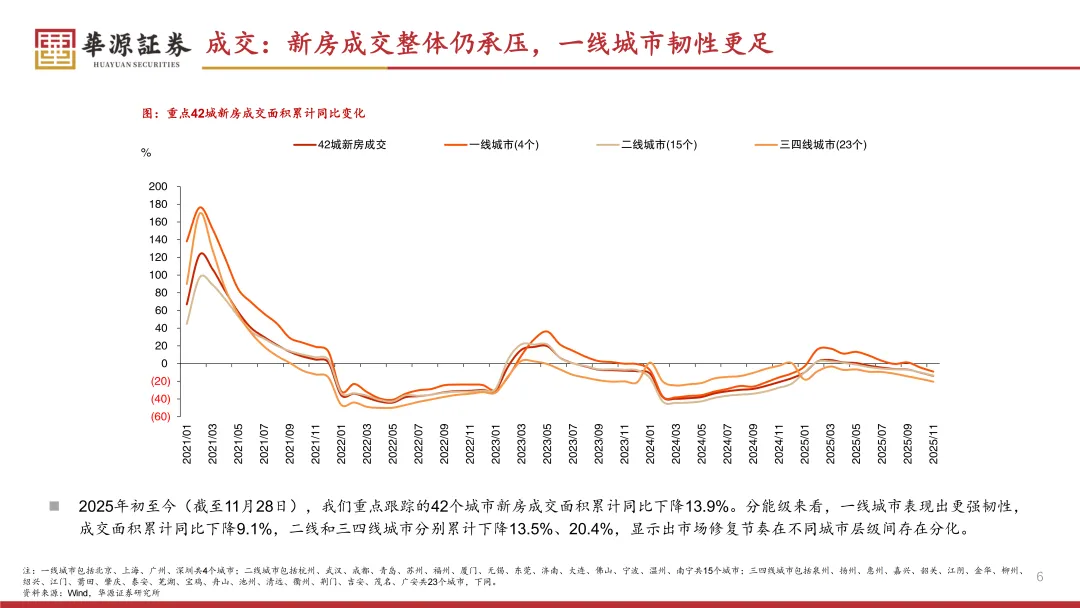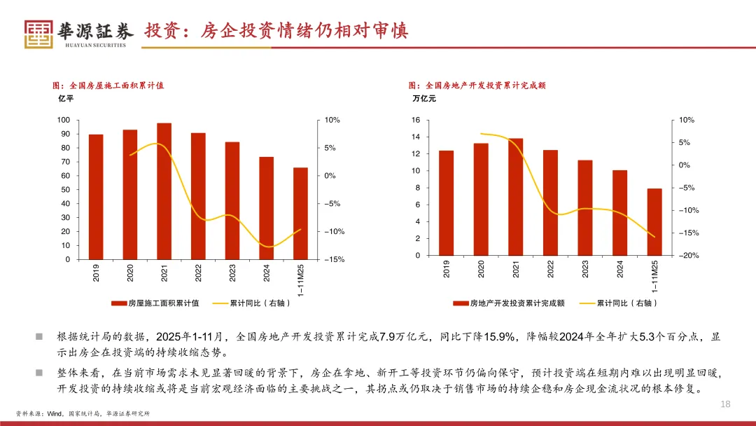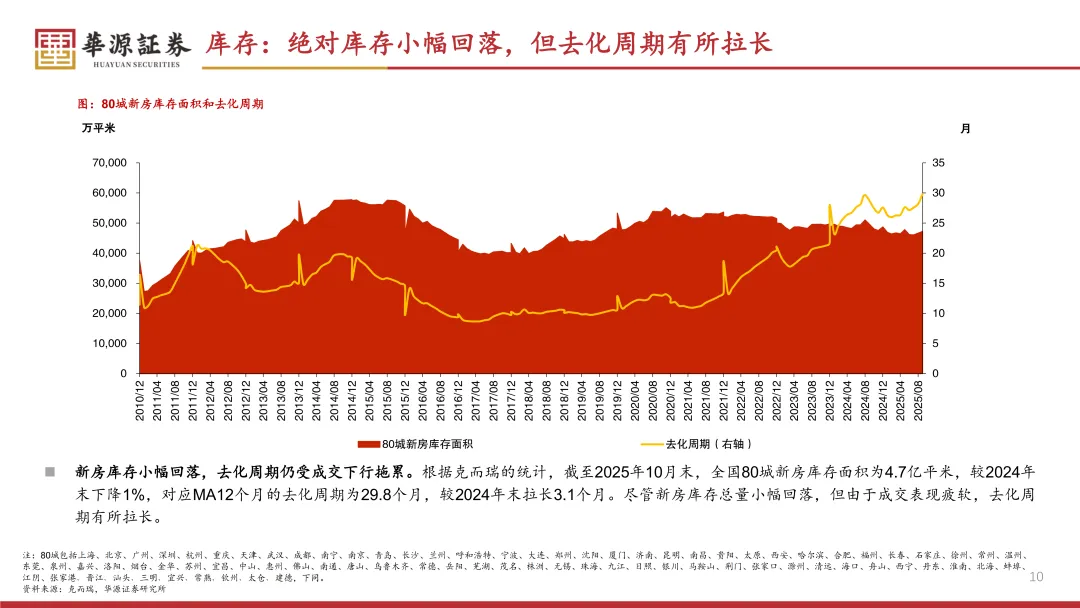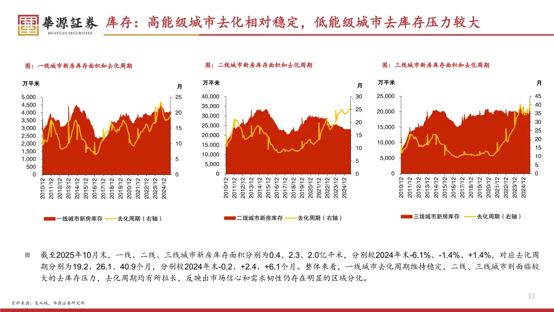 现状分析:当前中国房地产市场正处于结构性调整阶段,整体特征表现为“量价齐跌、库存及投资压力仍存”。2025年,全国新房成交延续22年以来的调整趋势,70城新房二手房价格同环比持续下跌,价格端仍在底部震荡。库存方面,新房和二手房库存去化压力仍在增加,其中新房库存虽略有回落,但在成交持续偏弱的背景下,全国平均去化周期仍维持高位,库存压力依旧突出。投资端,房企整体延续谨慎态度,拿地意愿偏弱,新开工面积持续下降,房地产开发投资降幅仍在扩大。