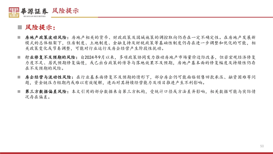 风险提示:政策波动风险,行业基本面修复不及预期的风险,房企经营与流动性风险,第三方数据偏差风险