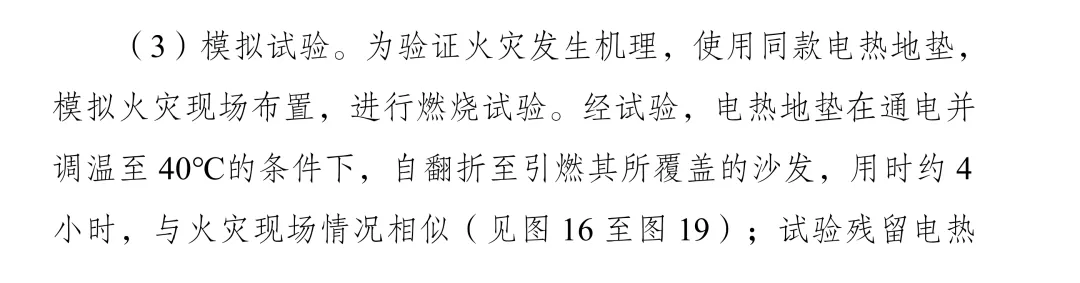 (三)模拟实验揭示电热地垫通电起火的燃烧特征