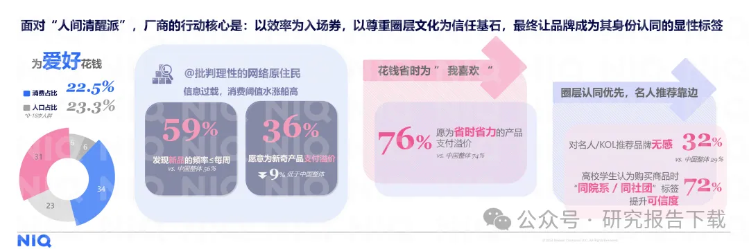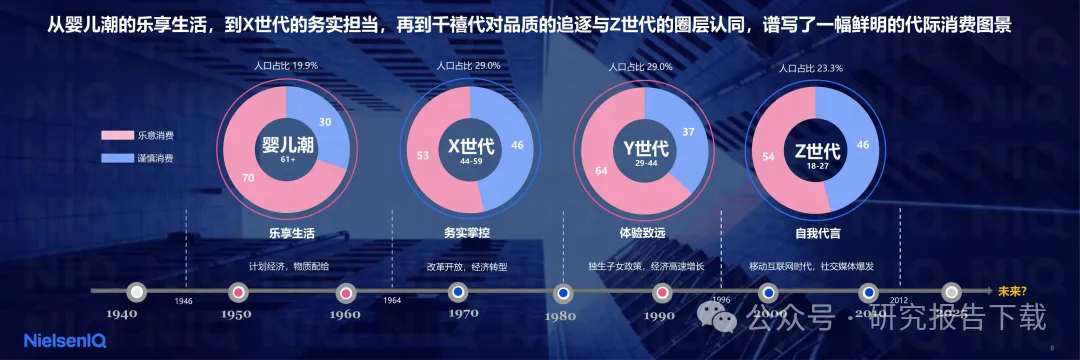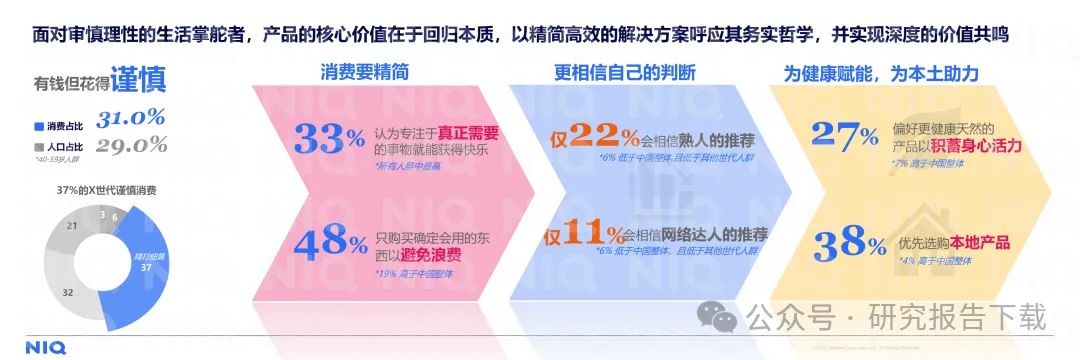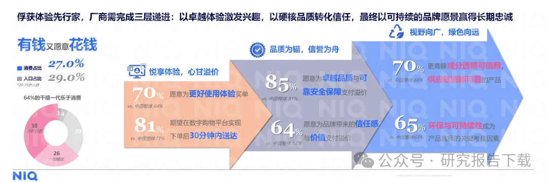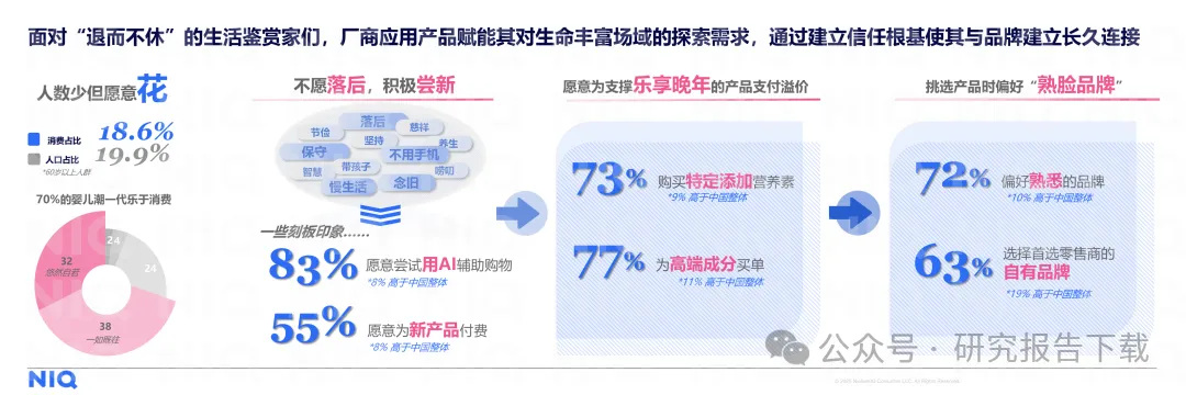 消费市场呈现 “功能质量奠基、健康便捷乘势、体验终成归途” 的特征,产品安全与质量是消费者首要考量,健康、便捷属性备受青睐。不同世代消费差异鲜明,婴儿潮一代乐于为乐享晚年的产品与新事物买单,X 世代秉持务实极简理念偏好本土健康产品,千禧一代注重品质体验与可持续性,Z 世代聚焦圈层认同为爱好消费。品牌需确立清晰价值主张,贴合目标世代特征精准触达。通过产品创新、情感体验与价值承诺,在全链路建立深度认同,实现与消费者的长期陪伴,解锁不同群体的消费潜力。