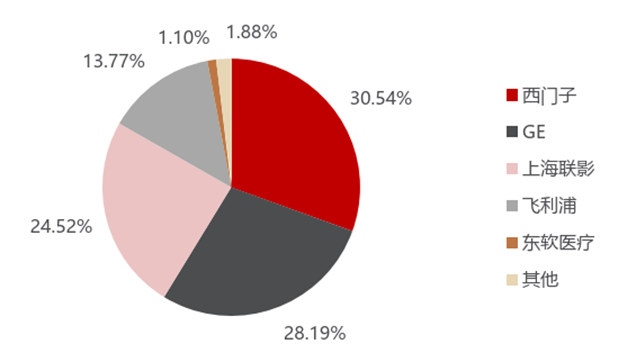 在竞争格局方面,第一梯队主要以跨国医疗器械企业为主,这些企业市场占有率高,研发能力较强,高端超导MRI 市场基本上被GE、飞利浦、西门子三家国际巨头垄断。第二梯队为我国本土企业,包括成都上海联影、东软医疗等企业,目前已实现1.5T 和3T 超导 MRI 的商业化生产。