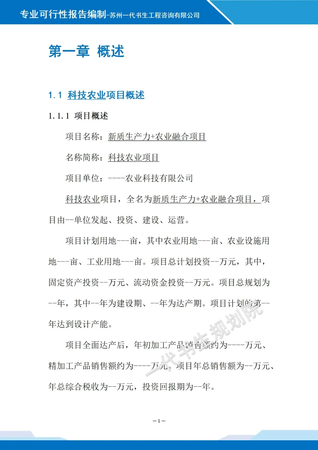 以下是《新质生产力+农业融合项目可行性研究报告》的案例展示,该项目可行性报告编制公司为苏州一代书生工程咨询有限公司。以下仅为报告部分内容,非全部。项目可行性研究报告编制、项目立项报告编制,请联系:17601499280。