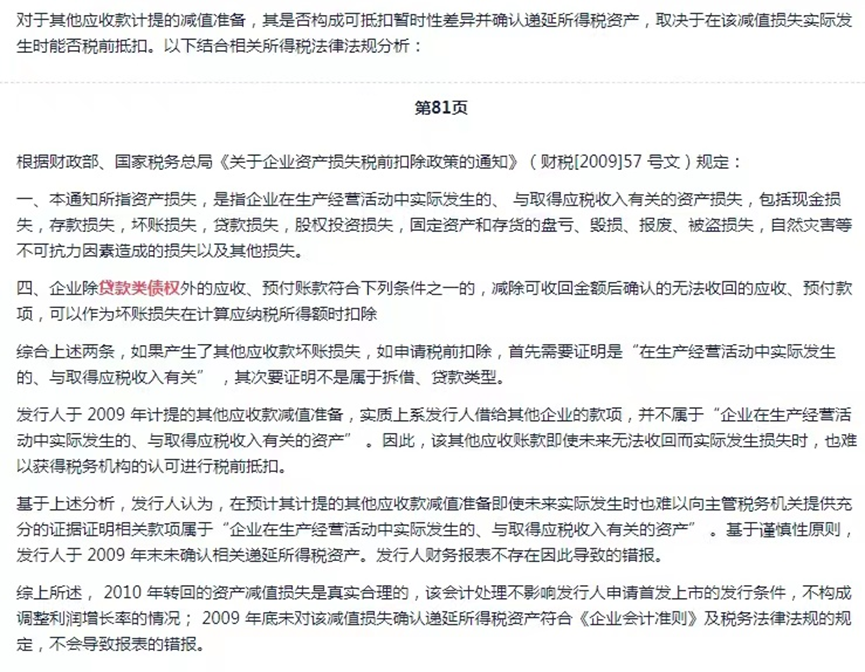 唐姐也看到个别上市公司的招股说明书提到其他应收款计提的减值损失,由于所得税税前扣除存在不确定性,所以没有将其确认为递延所得税资产。