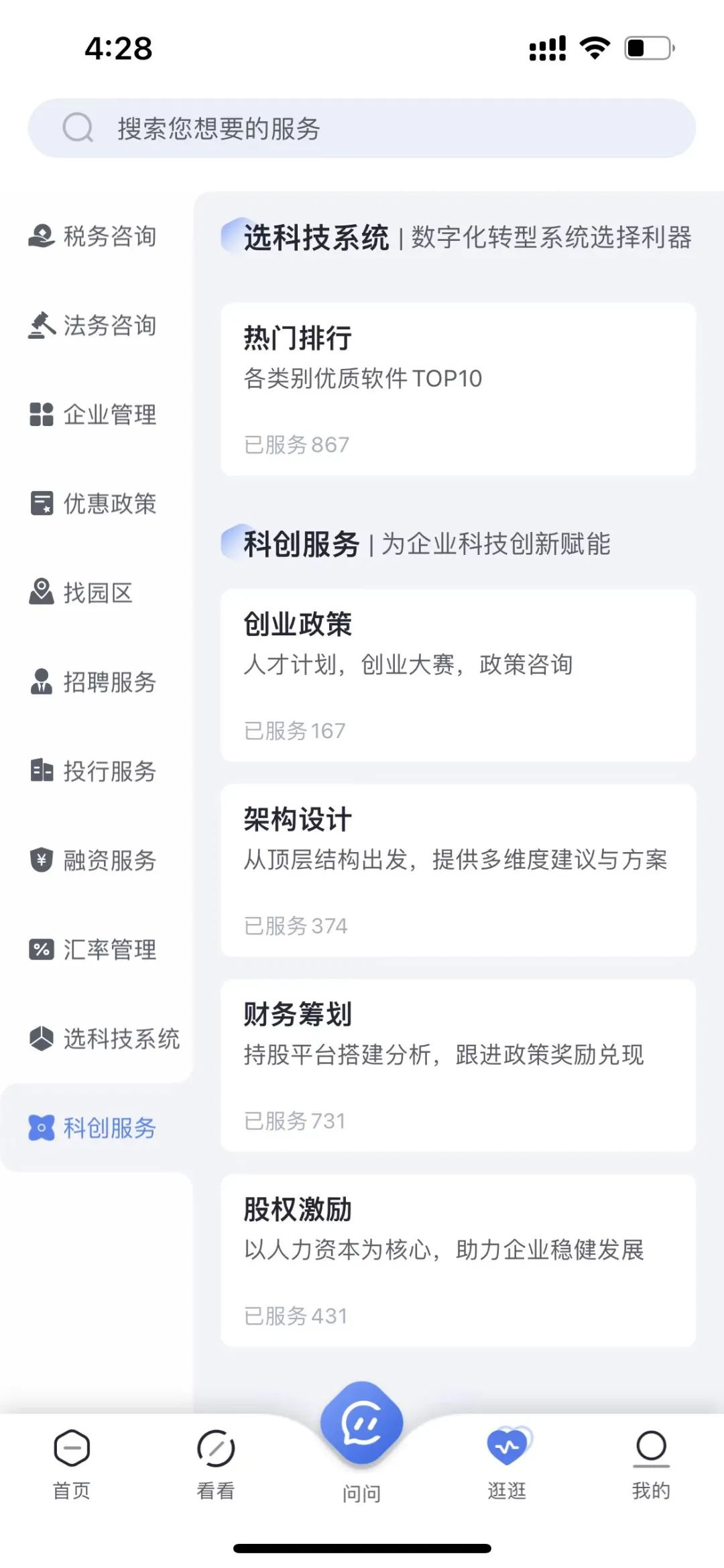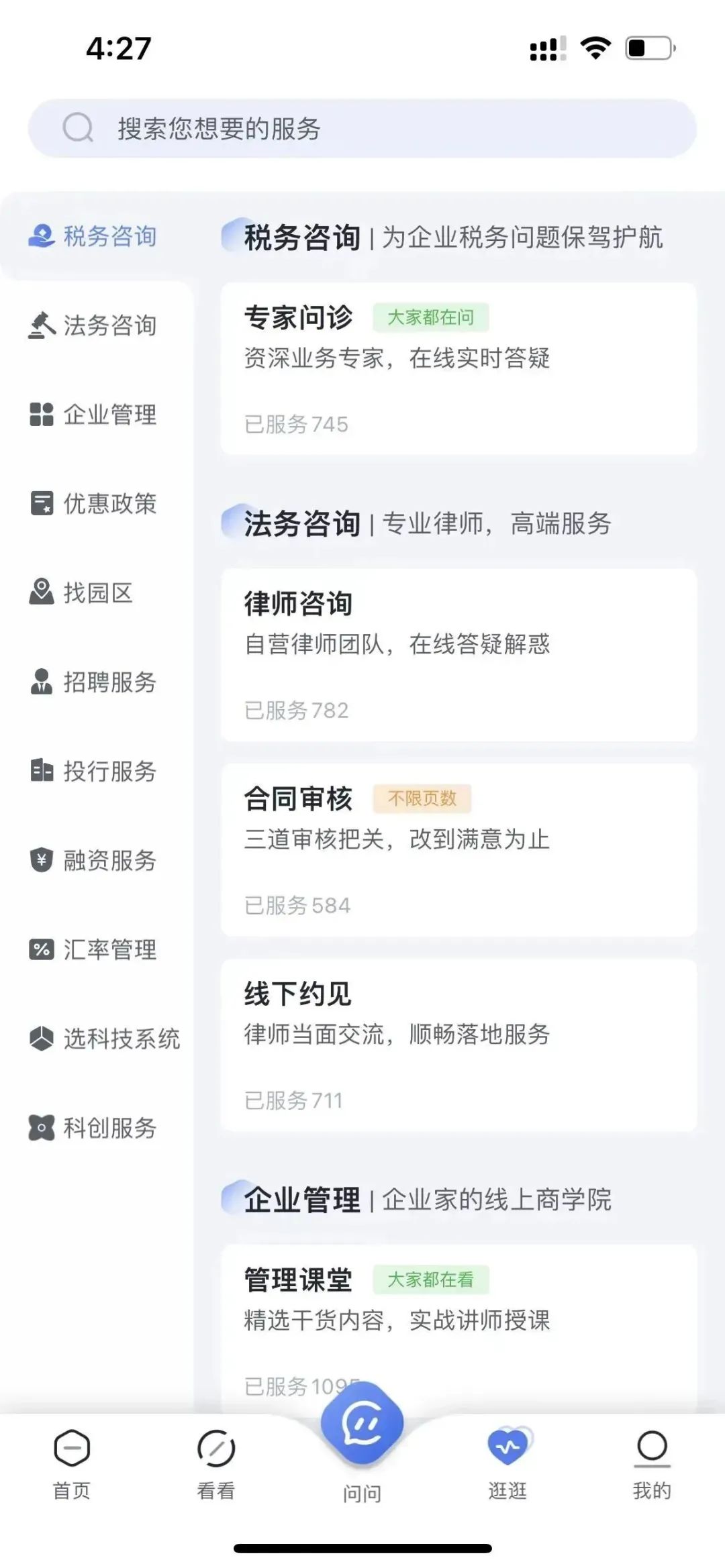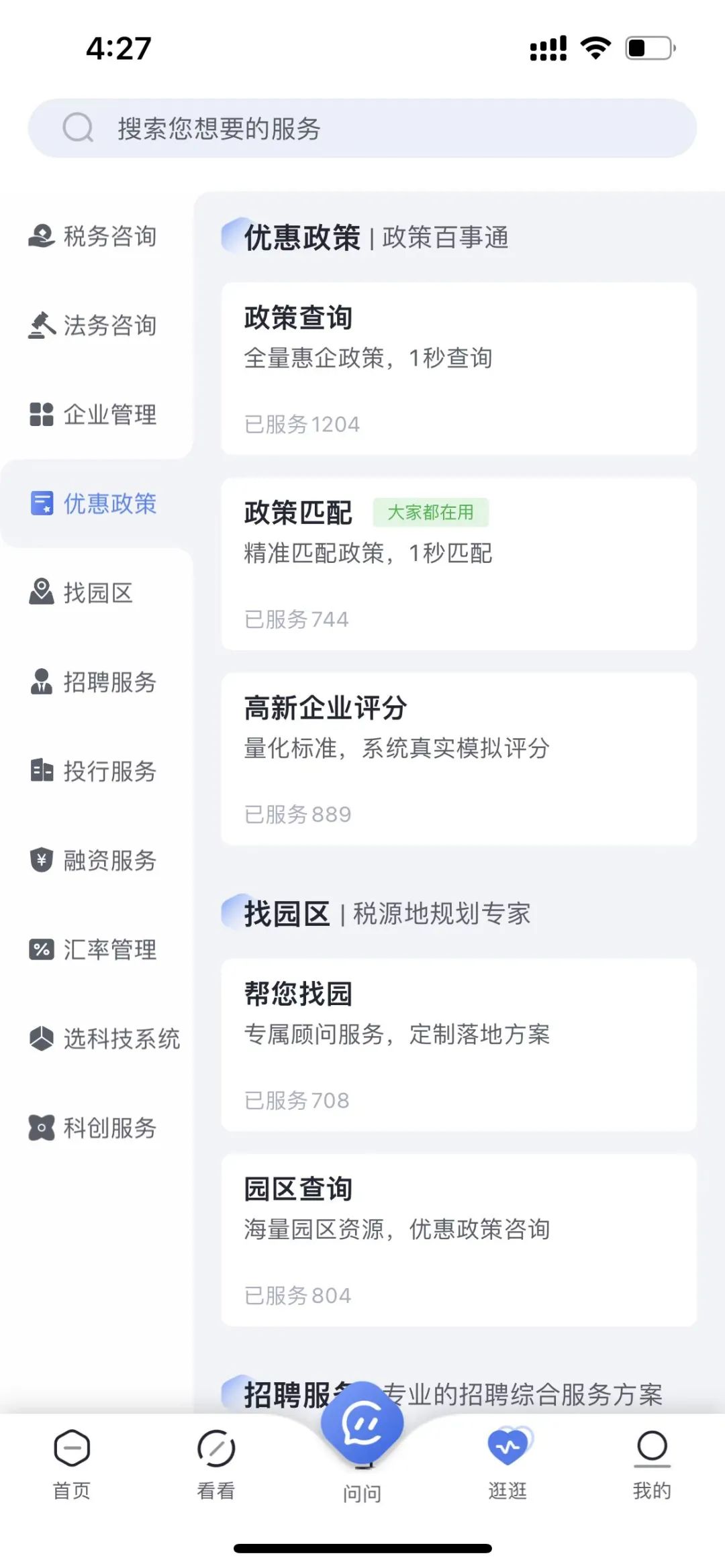 在里面,可以咨询税务问题、查优惠政策、找园区、选科技系统……获得各类解决方案!