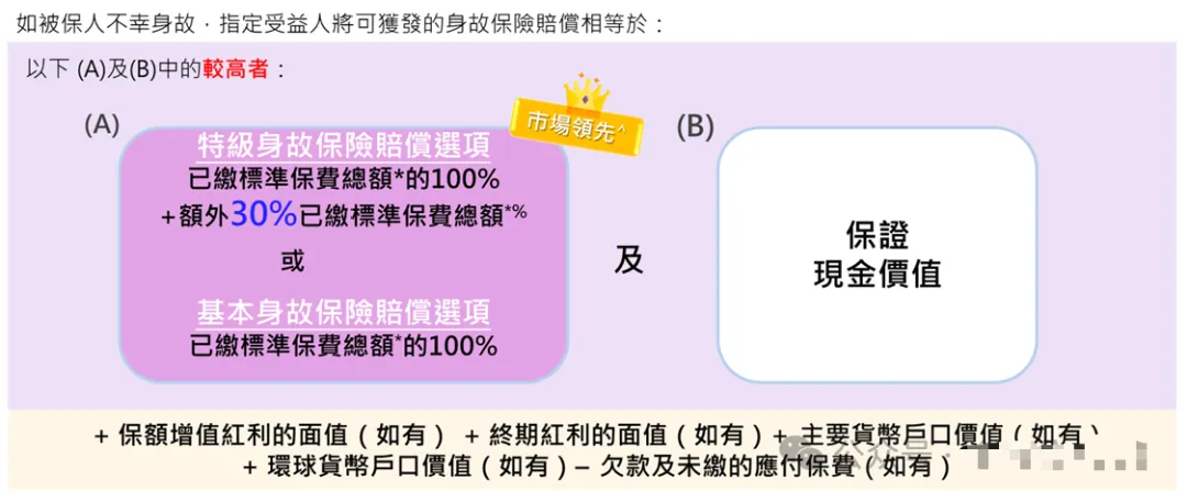 特级身故保障:额外赔付30%已缴保费,总身故赔偿远超同类产品,增值与保障兼顾。