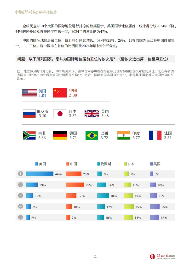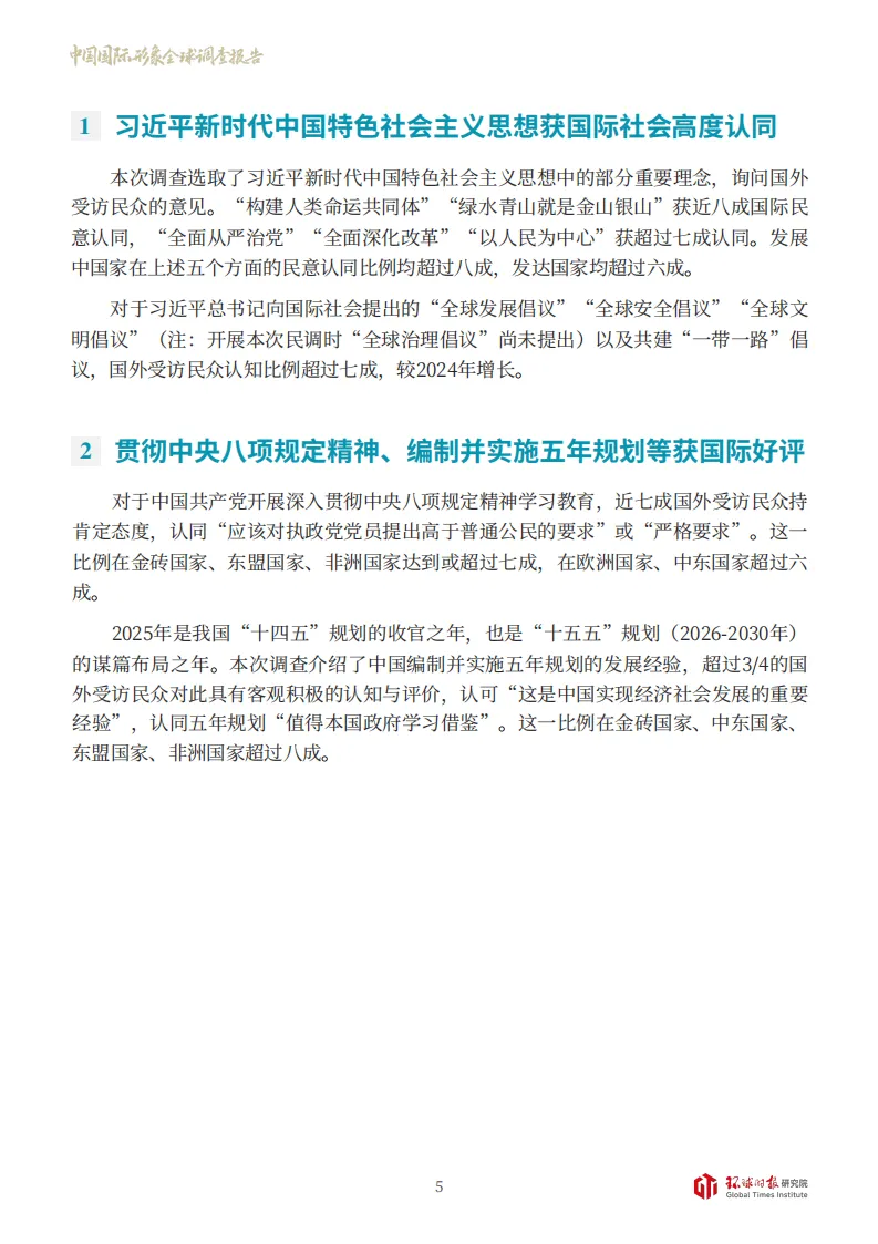 《2025中国国际形象全球调查报告》由环球时报研究院于2025年8-10月在全球46国开展,覆盖51689份有效样本,涵盖不同地域、发展水平的国家,全面呈现了国际民众对中国的认知与评价。