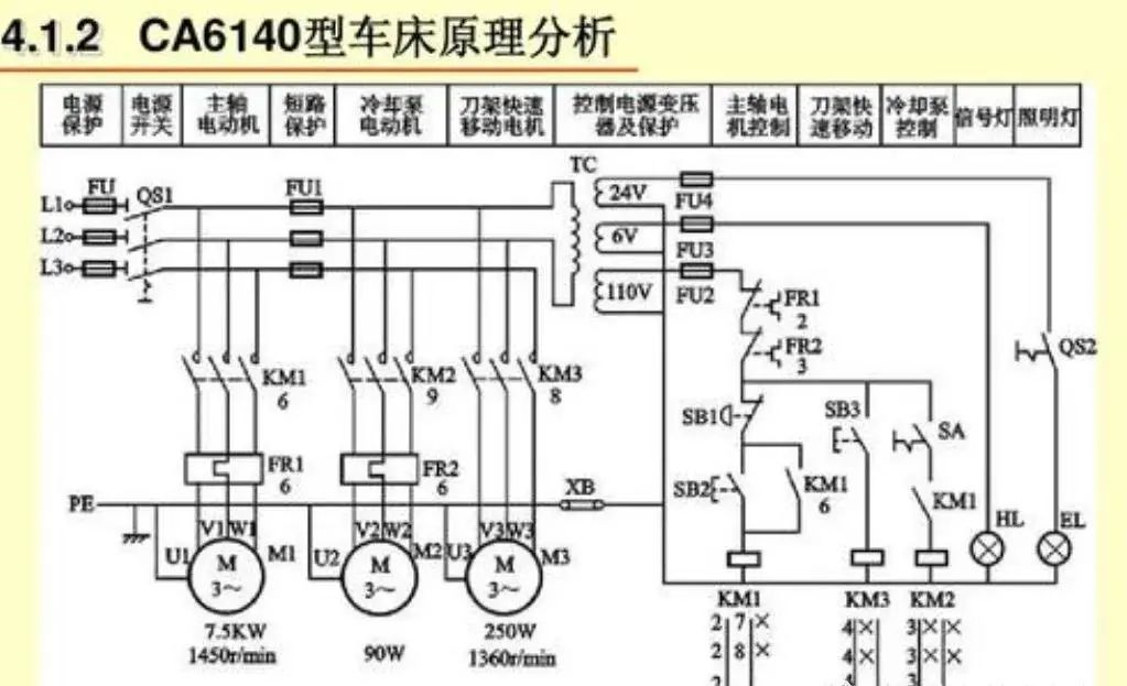 通常,在熟记电气图形符号的基础上就可以阅读电气原理图。看图时,首先看主回路,其次看辅助回路,最后看照明、信号、保护等回路。