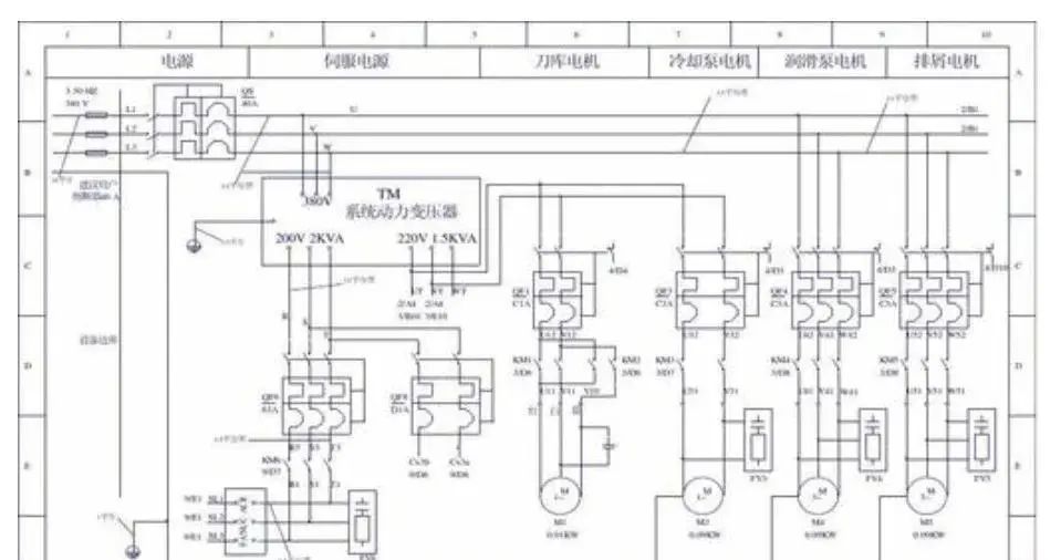 ①、看电源。首先要看清电源是什么电源,是直流的还是交流的,其次要看清电源是从何处接来,电压有多大。通常,从主回路的两根相线上接来的电源,其电压为 380伏,从主回路的一根相线和一根零线上接来的电源,其电压为220伏。