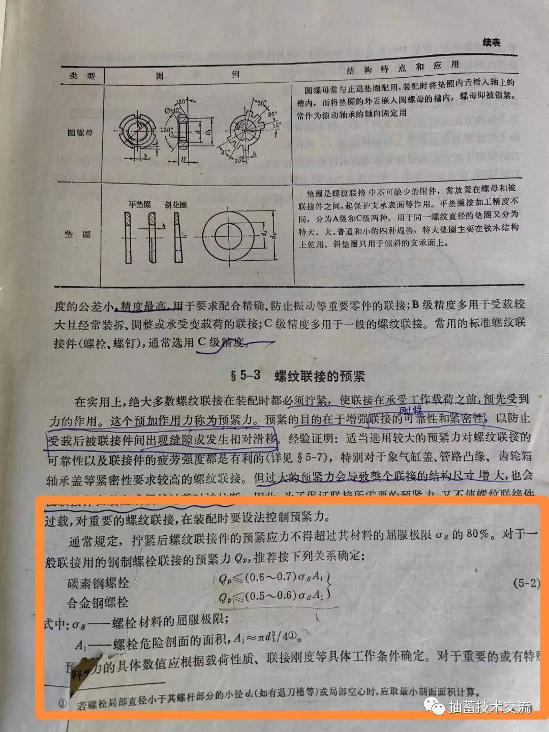 对螺栓预紧力的计算首先根据工作载荷确定,根据残余夹紧力、工作应力选择材料。《机械设计手册》对材料屈服强度的要求安全系数更大,其他非常合理。对扭矩控制法或拉伸力逐渐递增的方式拧紧螺栓,预紧应力达到屈服强度80%可以接受,但如果用拉伸器拉紧的螺栓屈服风险会增加。设计合理、使用得当的螺栓是不需要更换的。