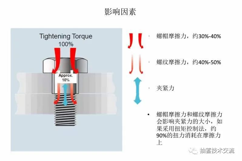 拧紧方式预紧螺栓一般不适合在重要的场合,其各接触面的摩擦力对扭力消耗太大,螺栓预紧力全变得难以控制。螺帽底面的摩擦力也会造成支承面摩损,引起联接的不可靠。