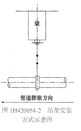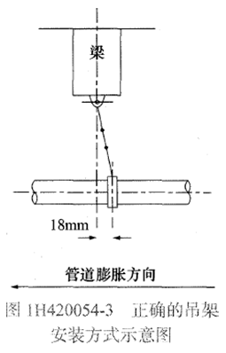 在工艺管道安装过程中,一段水平安装的蒸汽管道的一个吊架,其安装时与管道轴线垂直,如图1H420054-2所示。设计文件显示,蒸汽管道在该吊架处的设计热位移值为36mm,且未规定具体的安装方式。监理工程师要求A单位对吊架的安装方式进行更正。
