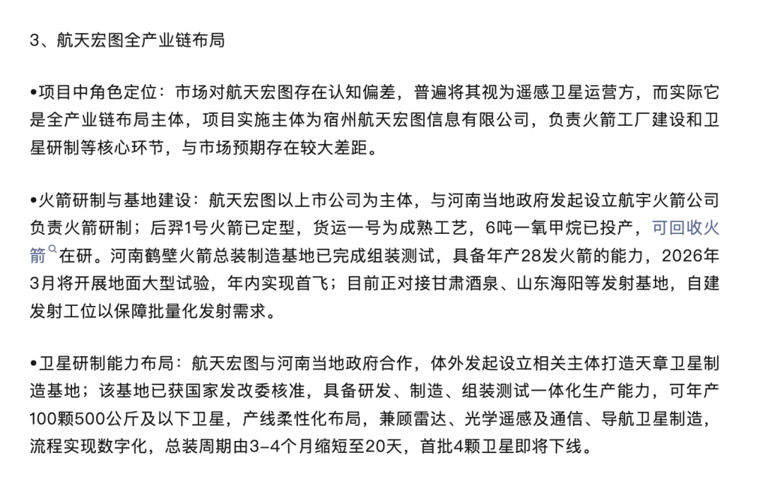 技术渊源:该公司是航天宏图在河南鹤壁孵化的火箭制造企业。2025 年 11 月,其位于鹤壁的2 万平方米总装智造基地已投产,宣称具备年产20 发火箭的能力。