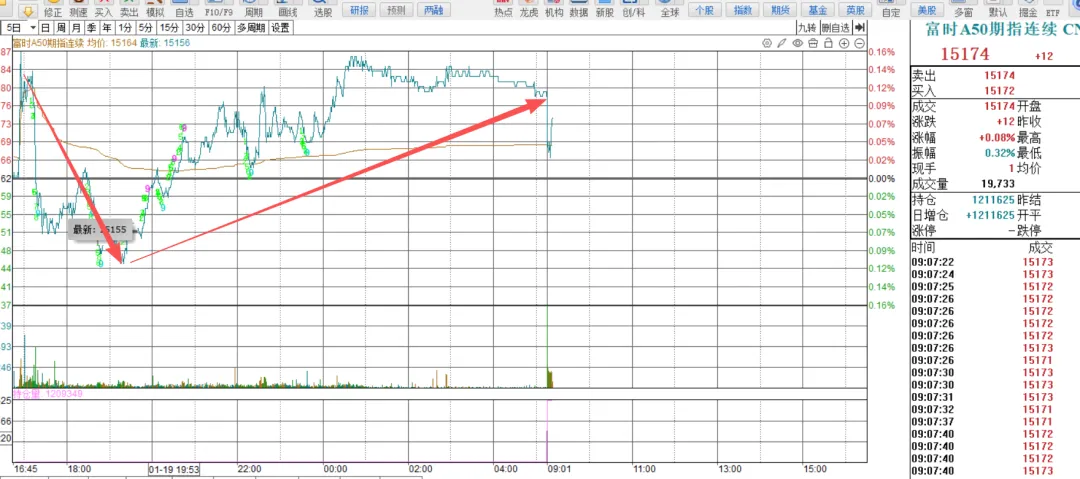 隔夜富时A50期指走势