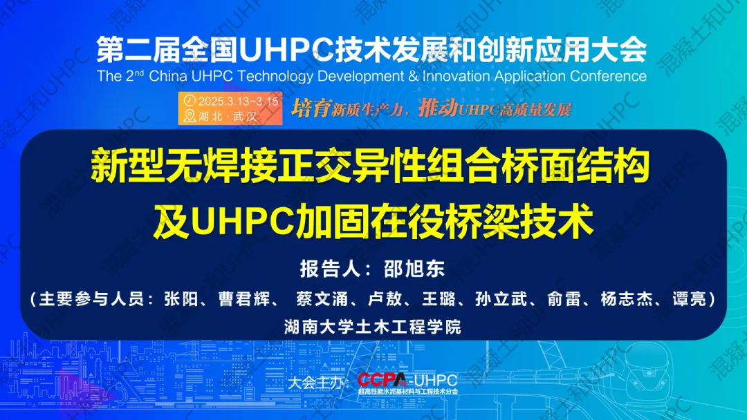 由CCPA-UHPC分会主办的2025年行业大会——“第二届全国UHPC技术发展和创新应用大会”于2025年3月13-15日在武汉成功举办。大会以“培育新质生产力,推动UHPC高质量发展”为主题,邀约了51个专题技术报告,组织了四场分论坛,分别围绕“UHPC结构创新与应用”“建筑创新与应用”“UHPC成型与施工技术”及“UHPC材料性能提升与应用场景开发”展开。会后,许多参会代表表示,大会的信息量极大,难以在短时间充分学习吸收,希望能分享报告PPT或视频供进一步学习。经征询大会各位报告人的意愿,获得许可的部分报告PPT或视频将在本公众号上陆续发布,敬请关注。