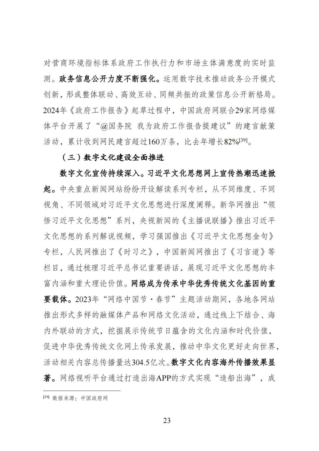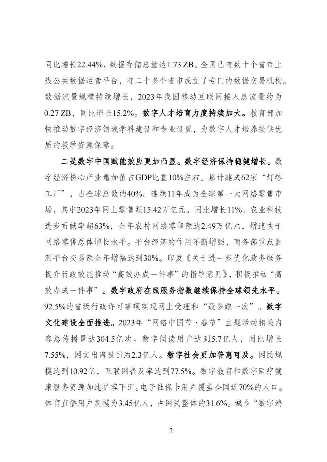 为贯彻落实党中央、国务院关于建设数字中国的重要部署,国家数据局会同有关方面系统总结2023年数字中国建设取得的重要进展和工作成效,展望2024年数字中国发展情况,编制形成《数字中国发展报告(2023年)》,6月30日正式发布。