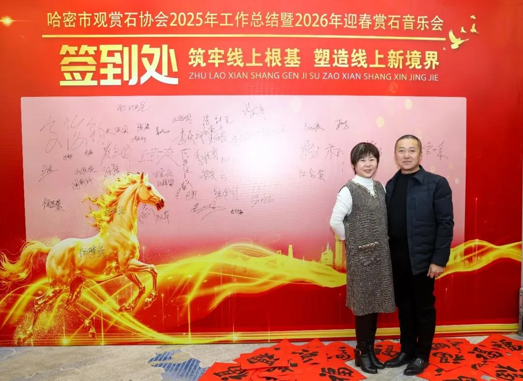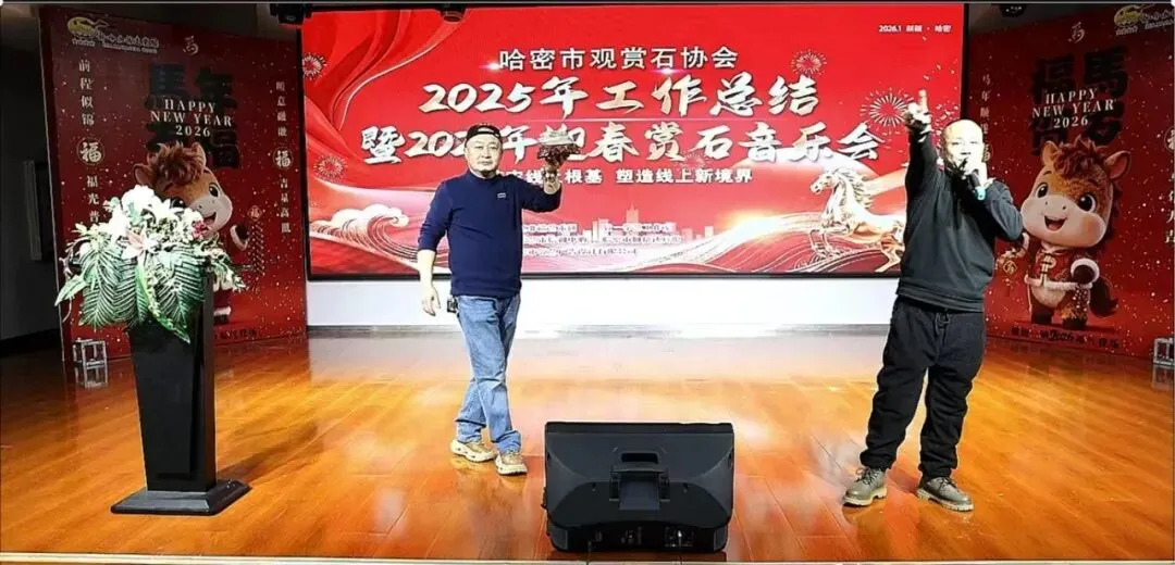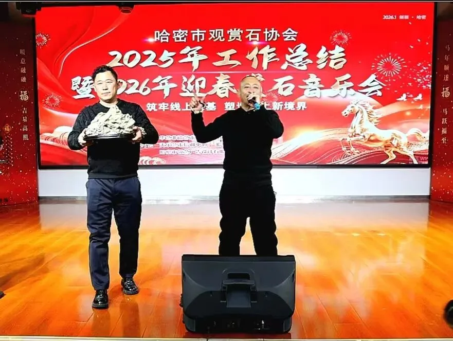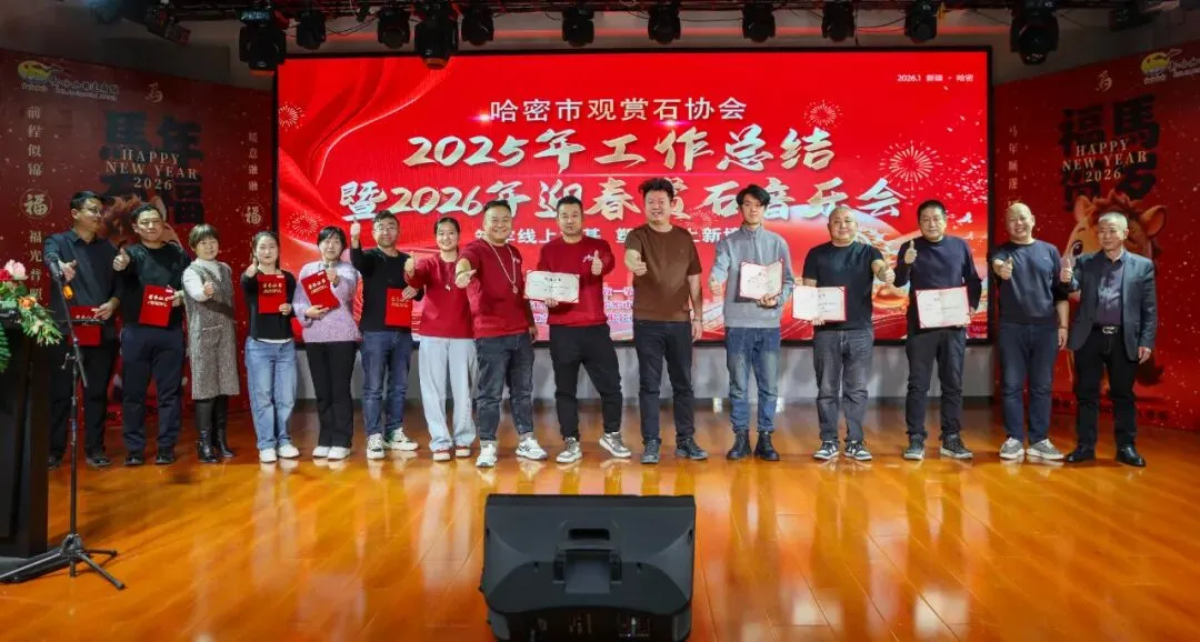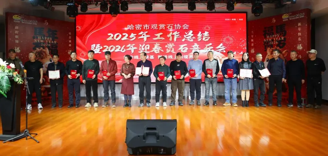 2026年1月18日,哈密市观赏石协会年会在哈密加格达宴会楼隆重举行。特邀嘉宾与全体会员近200余人欢聚一堂,同贺新春、共叙发展。