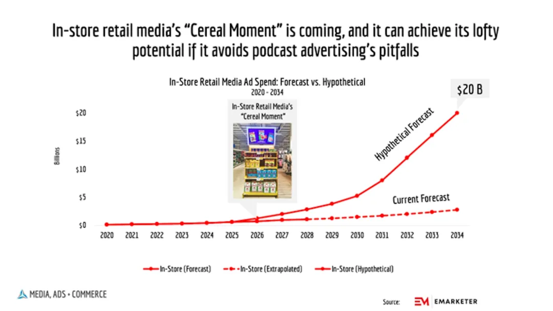 具体来看,Kroger计划在2026年大规模铺设智能广告屏幕,Albertsons也紧随其后。Walmart、Instacart等其他头部玩家,预计也将推出比当前更具规模化的店内广告方案,加入这场战局。到2026年底,美国市场的店内广告网络将从概念落地为现实,并迅速演变为全国性广告预算的“必争之地”。