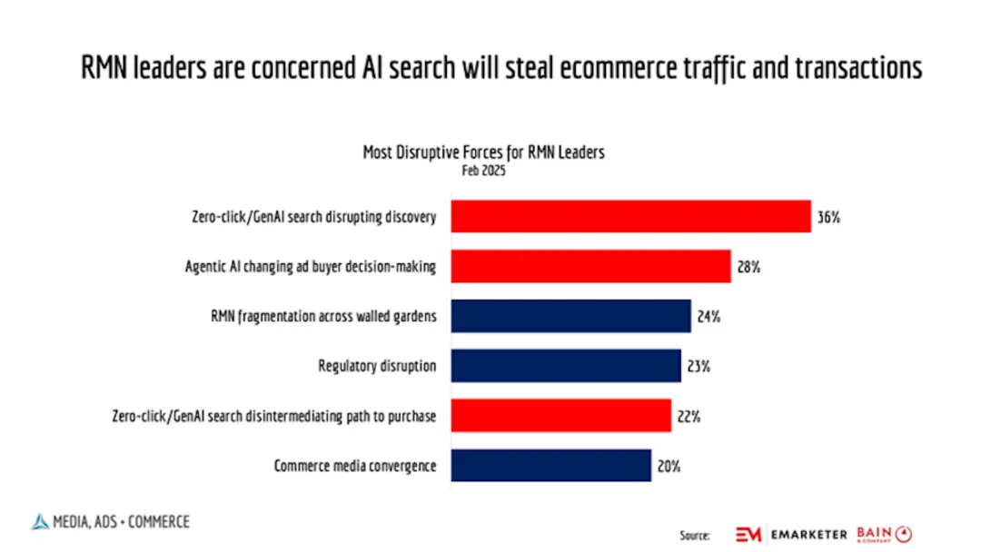 行业里一直担心,如果用户都不用逛电商平台了,平台上的零售媒体广告(比如商品搜索页广告、首页弹窗广告)就没人看了,零售媒体行业会受致命打击。