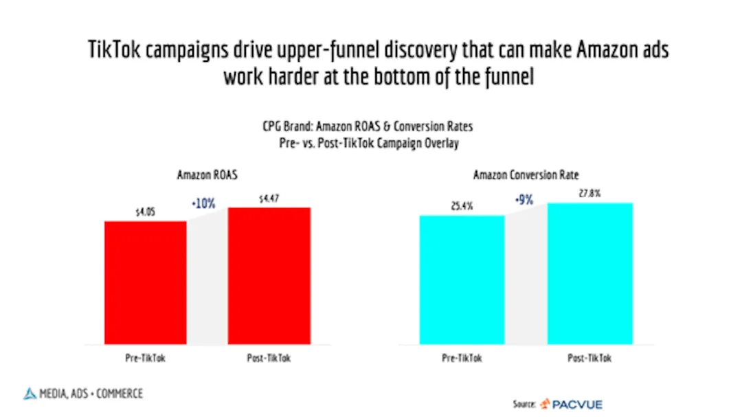 而且不同渠道协同起来效果会更好:比如品牌在亚马逊上本来就有广告投放,再叠加TikTok的社交视频广告,既能靠TikTok吸引新客,又能靠亚马逊承接这些客户的下单需求,最终转化率和广告支出回报率能实现两位数提升,这种案例现在已经很常见了。