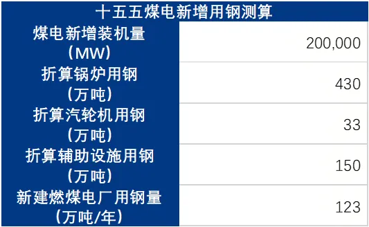 根据测算,我们认为“十五五”期间我国煤电装机建设增速较“十四五”期间放缓,但仍将带来年均120万吨的钢材需求。