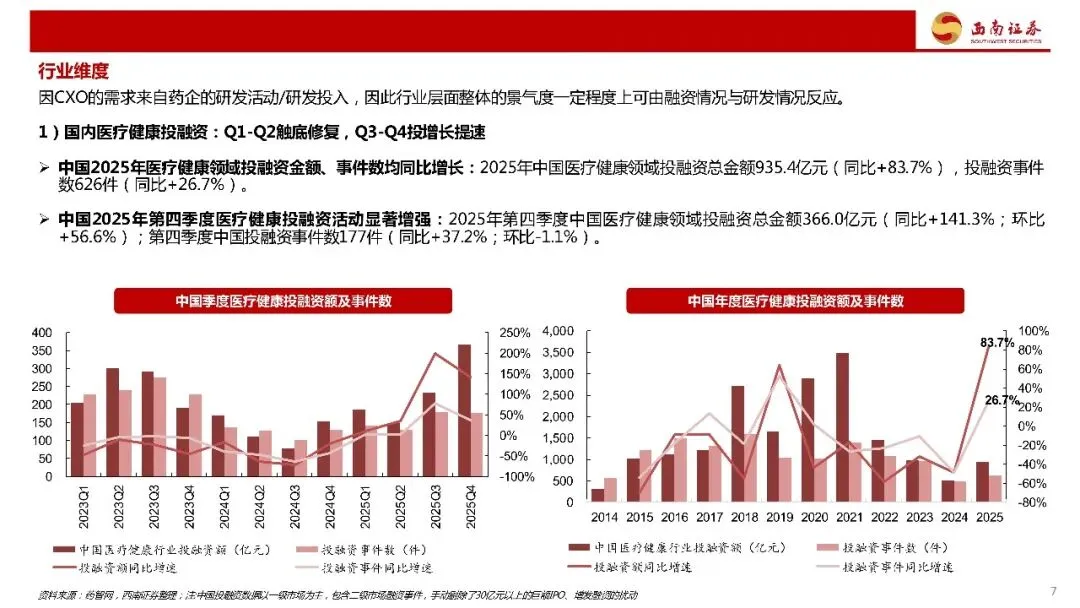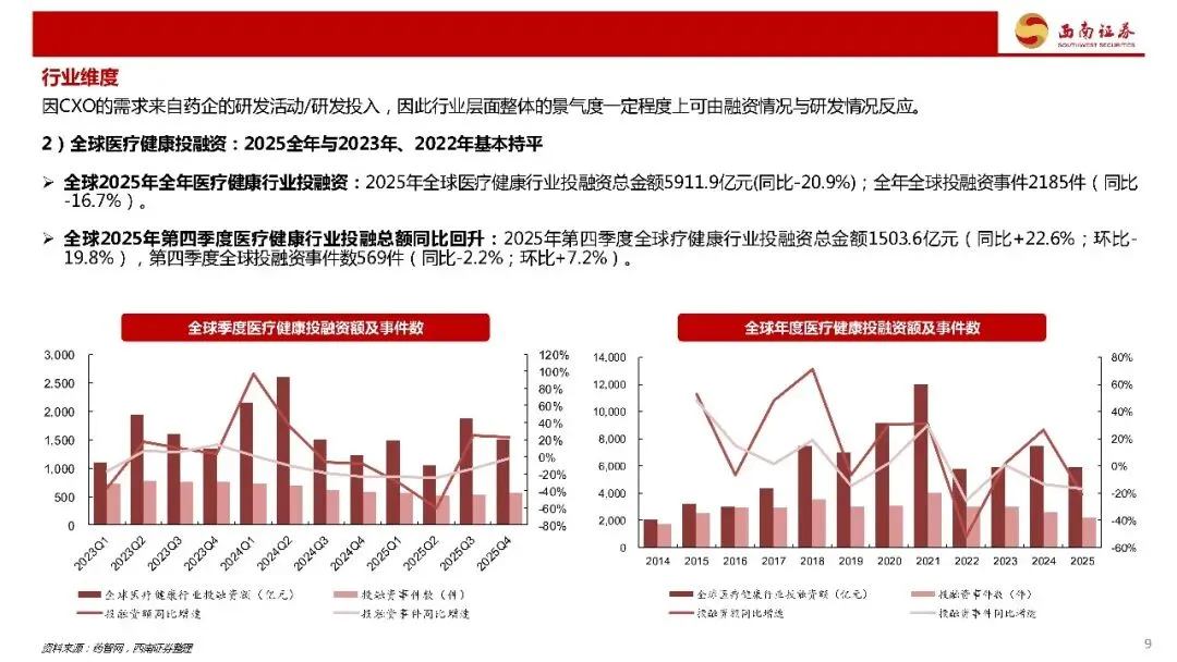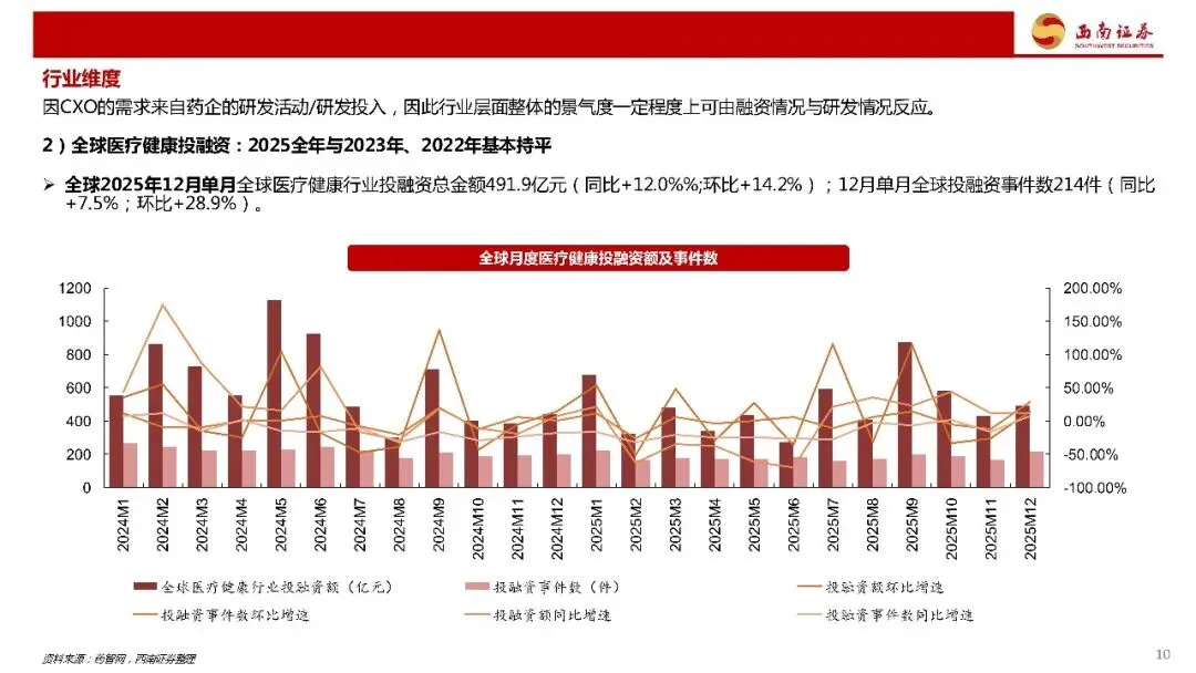 2024-2025板块走势复盘:2024年上半年,CXO板块在美国生物安全法案事件催化、各企业业绩增速预期调整等因素的影响下继续卖走低;2024年9月,国内股市出现政策驱动性牛市、地缘风险短期出清,CXO板块股价同步上涨;2025年3月,部分CXO头部上市公司订单数据超预期,二级市场估值注入;2025年4月,特朗普政府关税政策的为频繁变化对股市带来了短期扰动;2025年二、三季度,随短期扰动出清、(国内市场)下游创新药结构性牛市、部分头部企业定期报告的兑现与预期上调,板块股价进一步上升。四季度,美国2026年国防授权法案与1260H清单不确定性升级,同时市场风格调整,部分企业股价下跌。年末,猴价变化+国内数据亮眼,部分内需票股价大幅抬升。
