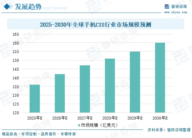 在5G普及、多摄像头设备普及、对更好的图像质量、更多样化的成像特性和创新功能的追求的推动下,全球智能手机CIS市场预计将以3.5%的年复合增长率扩大,并于2030年达到160亿美元。