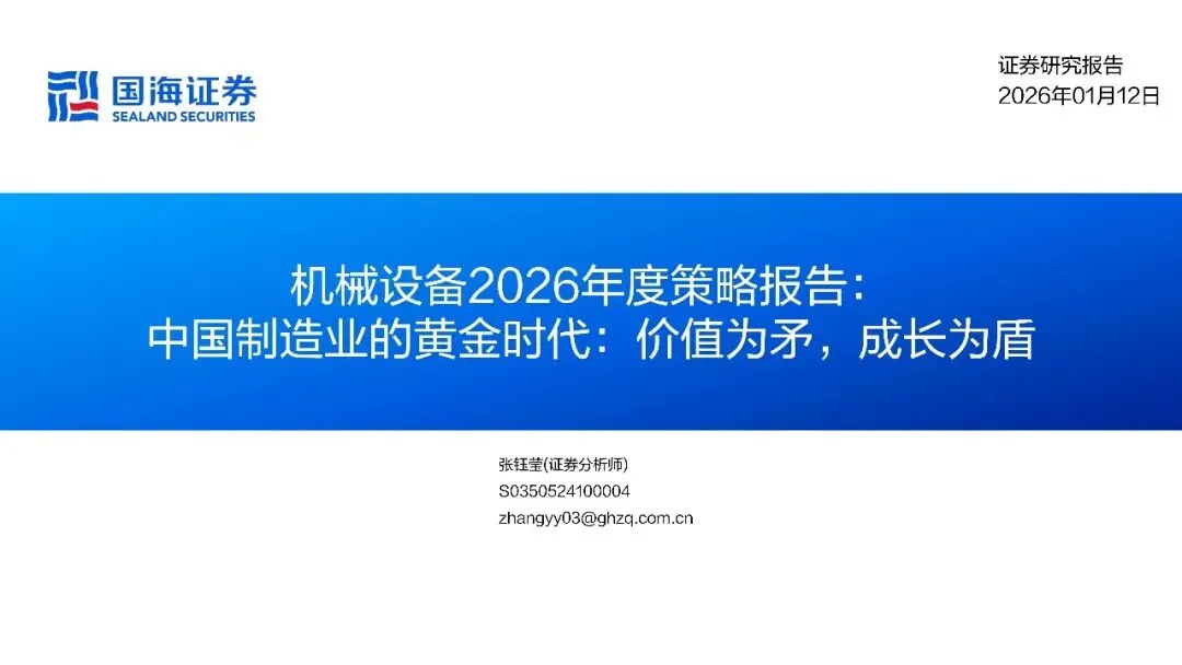 机械设备行业2026年度策略报告:中国制造业的黄金时代,价值为矛,成长为盾(附下载)