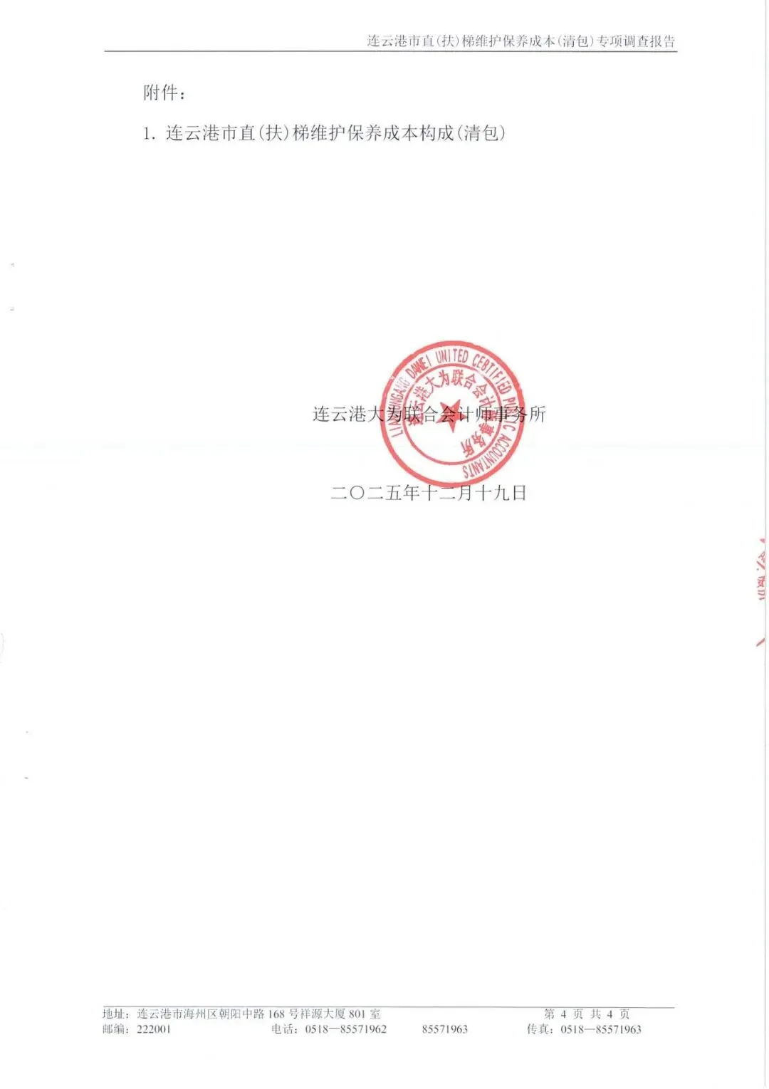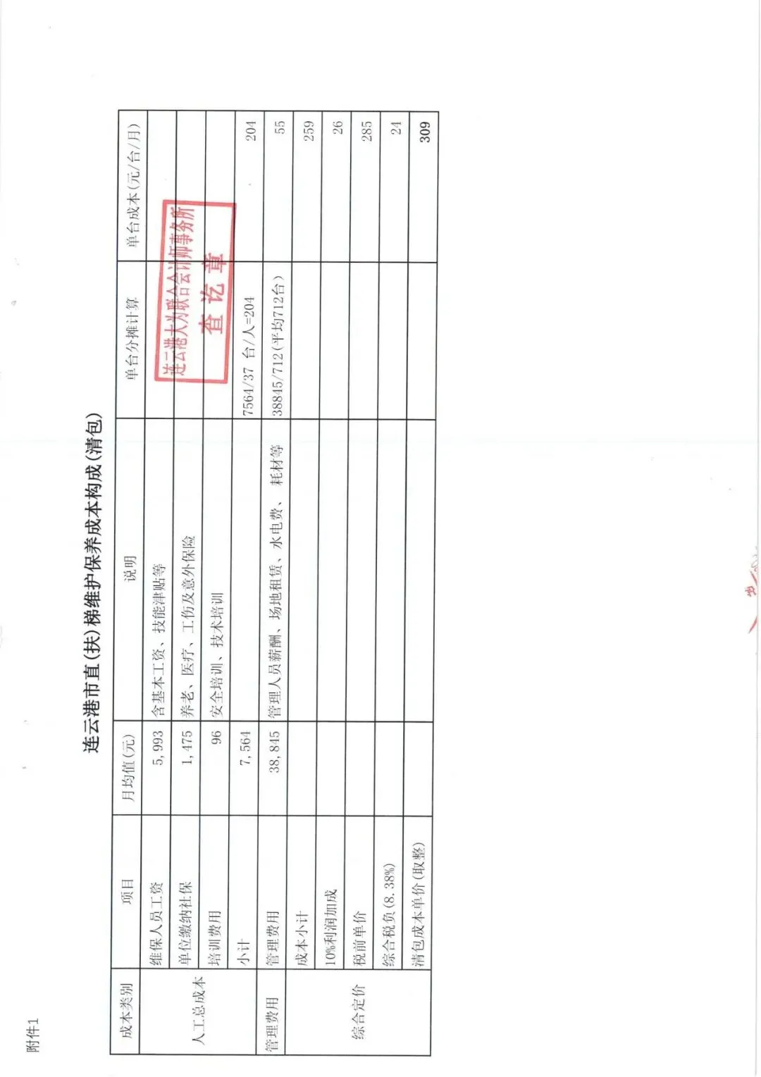 附:连云港市直(扶)梯维护保养成本(清包)专项调查报告