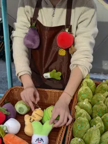 2026年1月17日下午,小榄镇樱花里商业街化身成为一个独特的“情绪菜市场”。这里摊位上摆放的不是蔬菜水果,而是代表不同情绪的毛绒蔬菜玩偶——“心慌慌”的蒜头“点蒜”、“火爆”的辣椒“啊爆”、“洒脱”的草莓“莓心莓肺”等。