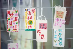 大家将特饮名称写在餐牌上,贴满“今日情绪特饮”墙,让墙面化作挂满心愿的“考前许愿树”,“好运连连”“考神附体”“逢考必胜”等祝福语随处可见。这不仅是情绪的释放,更将此刻的心情转化成了对自己的积极鼓励。
