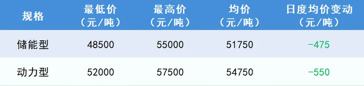 今日磷酸铁锂市场价格窄幅下跌,动力市场进入传统淡季,需求有所回落,但储能市场又对铁锂价格产生一定支撑,近期磷酸铁锂价格主要跟随碳酸锂价格波动,预计短期内维持震荡。
