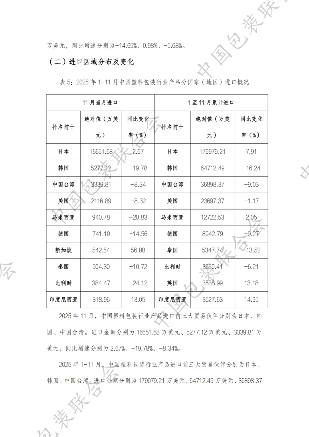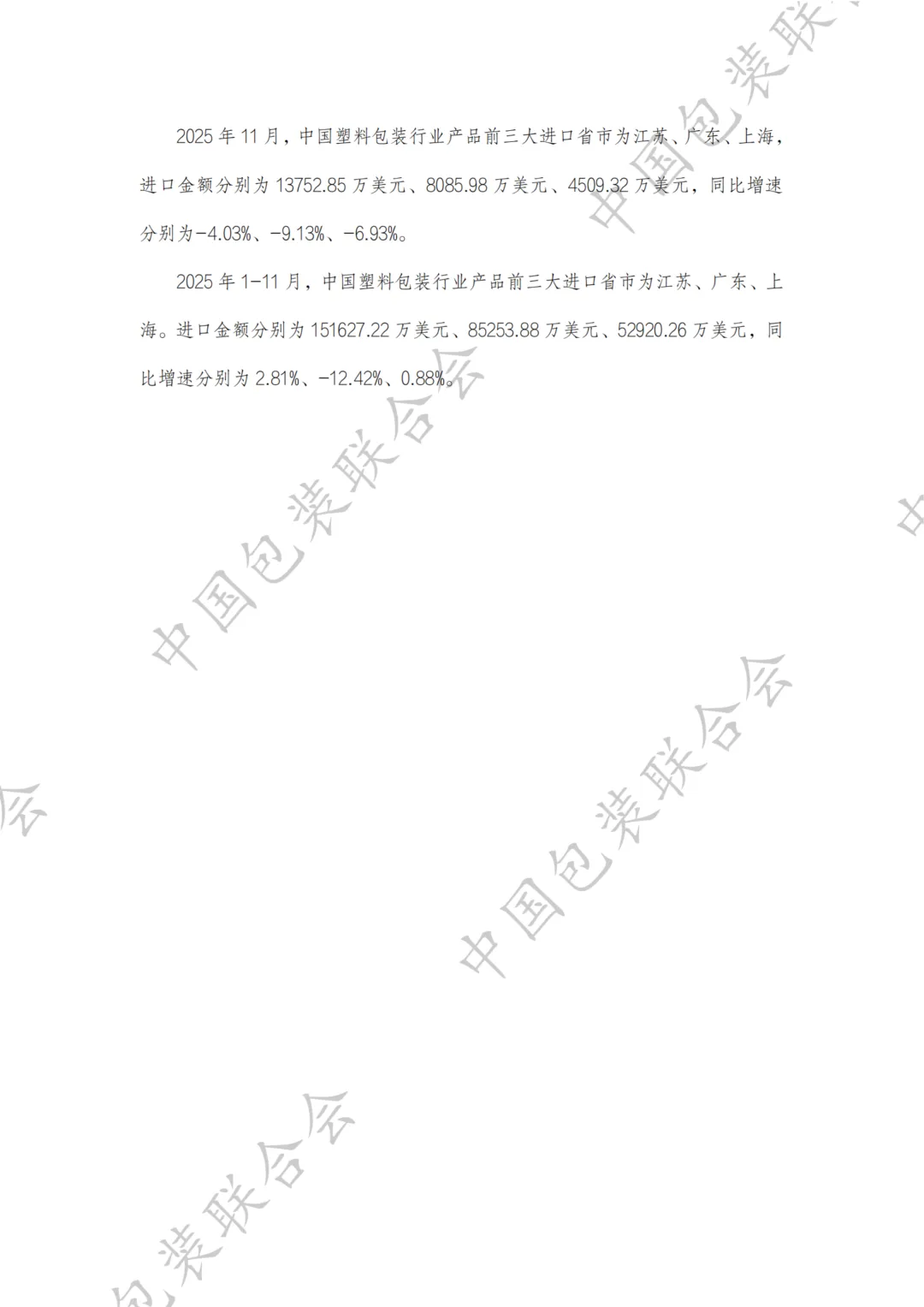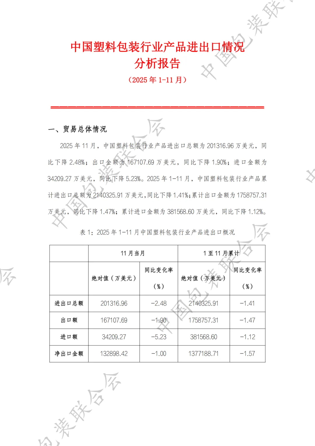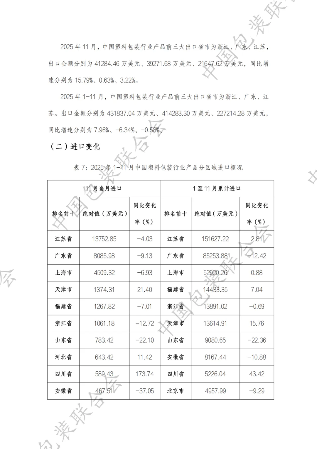 中国塑料包装行业产品进出口情况分析报告(2025年1-11月)