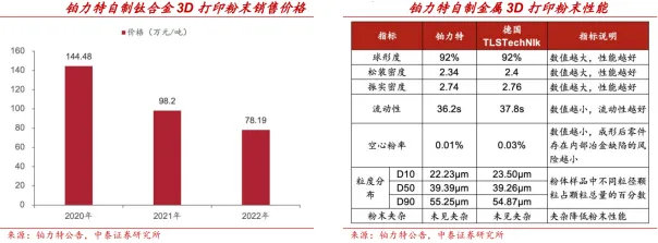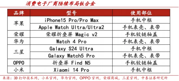 金属粉末价格持续下行,成本优化空间显著释放。3D打印要实现规模化应用,成本控制是核心前提。金属粉末作为主要原材料,其价格走势直接影响整机制造成本。以国内厂商铂力特为例,2020–2022年其自制钛合金3D打印粉末销售价格已从144.5万元/吨下降至78.2万元/吨,三年内累计降幅高达46%。在粉末球形度、密度、流动性等关键性能指标对标国际领先标准的基础上,价格下降进一步提升了国产材料的性价比优势。未来随着国产粉末产能释放和工艺稳定性提升,金属粉末价格仍具备进一步下探的空间,成为推动金属3D打印成本结构优化的关键变量,为工业场景广泛落地奠定基础。主流工艺路径技术成熟,产业化基础加速形成。金属3D打印技术逐步迈入成熟阶段,已具备支撑规模生产的工艺体系。主流路径包括粉末床熔融(PBF)和定向能量沉积(DED)两大类。其中,PBF工艺下涵盖SLM、SLS、EBM、MJF等子技术,适用于制造高精度复杂零件;而DED工艺(如LSF、WAAM)则适配大型结构件与修复场景。根据Wohlers2022年联合Senvol数据库统计,在全球范围内已有94%的金属增材制造产品采用PBF或DED技术,显示其已实现从实验验证到工业量产的关键跨越。PBF与DED路径在工业成熟度与应用广度上的同步提升,意味着金属3D打印已从“能不能用”转向“稳定可用”,为行业进一步拓展提供工艺保障和产业化基础。全球3D打印市场稳步扩张,2030年有望达1150亿美元。过去五年,全球3D打印行业整体延续增长趋势,市场规模由2020年的127.6亿美元增至2024年的219亿美元,CAGR达14.46%,保持稳定扩张。同期中国市场表现尤为亮眼,市场规模由2020年的208亿元人民币增至2024年的415亿元,CAGR达18.85%,成为全球增长最为迅速的地区之一。根据Wohlers预测,2030年全球3D打印市场规模将取决于未来增长路径:在成熟稳步增长情形下预计为840亿美元,高速增长情形下可达1450亿美元;若按十年CAGR(18%)推算,市场规模约为1150亿美元。航天航空需求相对稳定,复杂轻量化部件成标配。在2022年中国3D打印应用领域中,航空航天以16.72%的占比居首。金属增材制造技术凭借高强度、高精度和材料利用率高的优势,适用于一体化、多样化和异型构件的定制与快速迭代生产,在零件减重的同时,相比传统方式缩短生产周期并降低成本。航空航天领域已将3D打印确立为制造轻量化与复杂几何部件的核心手段。据Mordor Intelligence的预测,全球航空航天及国防领域的3D打印市场将于2029年达到82亿美元,预测2024年-2029年复合增长率为约15.1%。消费电子空间广阔,新兴市场需求涌现。中国消费电子市场自2018年起呈增长趋势,2024年规模近1.98万亿元。消费电子产品正朝着减重、减薄与高复杂度方向演进,加之品牌在ESG和成本优化上的诉求,促使3D打印技术高度适配该领域。尤其在折叠屏铰链、手表及手机中框等3C领域精密零部件中,3D打印表现尤为突出。在设备开发中,3D打印大幅缩短原型验证周期,降低试错成本,并推动结构创新。随着设备和材料成本下降,3D打印将在更多消费电子产品中落地。3D打印助力汽车制造。据Precedence Research预测,2024年全球汽车3D打印市场规模约为33.6亿美元,预计至2034年将超过256.1亿美元,2025-2034年间复合增长率(CAGR)达22.52%,同时亚太地区增速最快。增长动力源于对轻量化、可定制零部件和制造可持续性的多重需求。3D打印技术为汽车制造商提供了极具价值的新路径:设计更新后可直接打印原型,加快设计迭代、降低成本;能制造气缸盖、液冷换热器、发动机缸体等功能件;还能通过集成模具与型芯、特定索具几何结构,实施高复杂度铸造以提升稳定性、缩短准备时间。该技术彻底变革了开发、设计与制造流程,实现更安全、成本更优、研发周期更短的产品开发流程。医疗器械定制升级,3D打印驱动精准医疗发展。3D打印技术显著提升了医疗器械领域的定制化制造能力,包括假体、植入物、手术导板、微型器械以及人体器官模型等应用。目前,已被应用于制造全膝关节植入物、髋臼杯、脊柱植入物等,为骨科、口腔科提供高度定制、精度可控的解决方案,制备复杂且高度定制化的高价值小型产品,并为手术规划提供精确模型,降低了手术风险,使得个性化医疗和精准治疗成为可能,推动行业进一步走向高端化与专业化。瞄准人型机器人轻量化需求,3D打印有望打开市场空间。目前已有多款机器人使用3D打印技术部件,相较于传统工艺,3D打印技术在材料性能、一体成型和生产效率方面展现出显著优势:3D打印件在Z轴方向上拥有卓越的强度,具有各向同性,并且在重量上可实现零部件减重超80%,让机器人动作更敏捷、能耗更低;通过3D打印可实现复杂内部结构与多尺度构型设计,实现复杂结构的无支撑一体成型,满足个性化定制需求;3D打印支持从数字模型到实体部件的直接转换,无需模具开发,大幅缩短研发周期,加速产品迭代,未来有望进一步推动人形机器人的升级迭代。数据中心液冷需求爆发式增长,3D打印散热器需求广阔。据Mordor Intelligence报道,2024年全球数据中心液冷市场空间为47.7亿美元,2024至2029年间CAGR为25.44%,预计2029年将增长至148.1亿美元。由于服务器机架平均功率密度高,AI算力提升带来的散热挑战。据麦肯锡称,平均功率密度从2022年的8千瓦增加一倍多,达到2024年的17千瓦,预计到2027年将达30千瓦。像OpenAI的ChatGPT这种训练模型,每个机架可能需要超过80