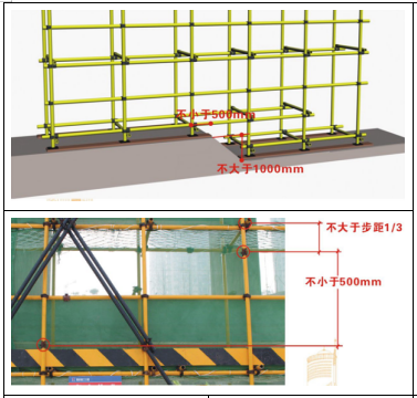 2.同步内隔一根立杆的两个相隔接头错开距离不宜小于500mm。