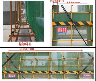 2.水平杆应设置在立杆内侧,单根杆长度不应小于3跨。