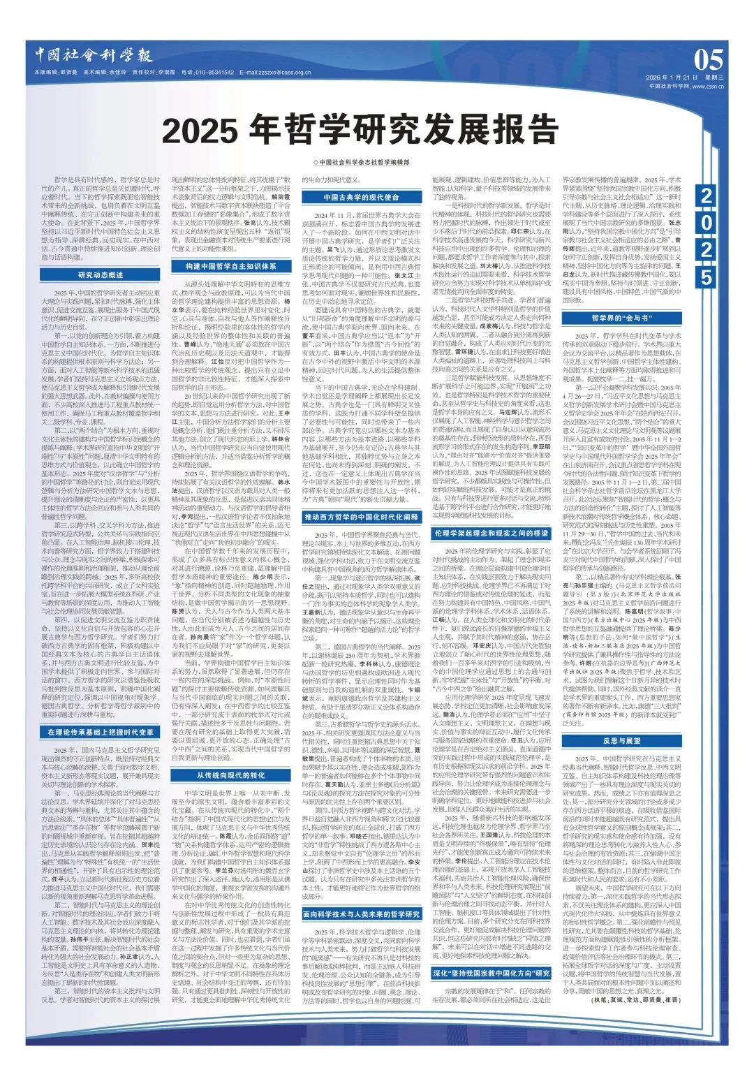 2025年,中国的哲学研究者主动回应重大理论与实践问题,紧扣时代脉搏、强化主体意识、促进交流互鉴,展现出服务于中国式现代化的鲜明导向,在守正创新中彰显出理论活力与历史自觉。