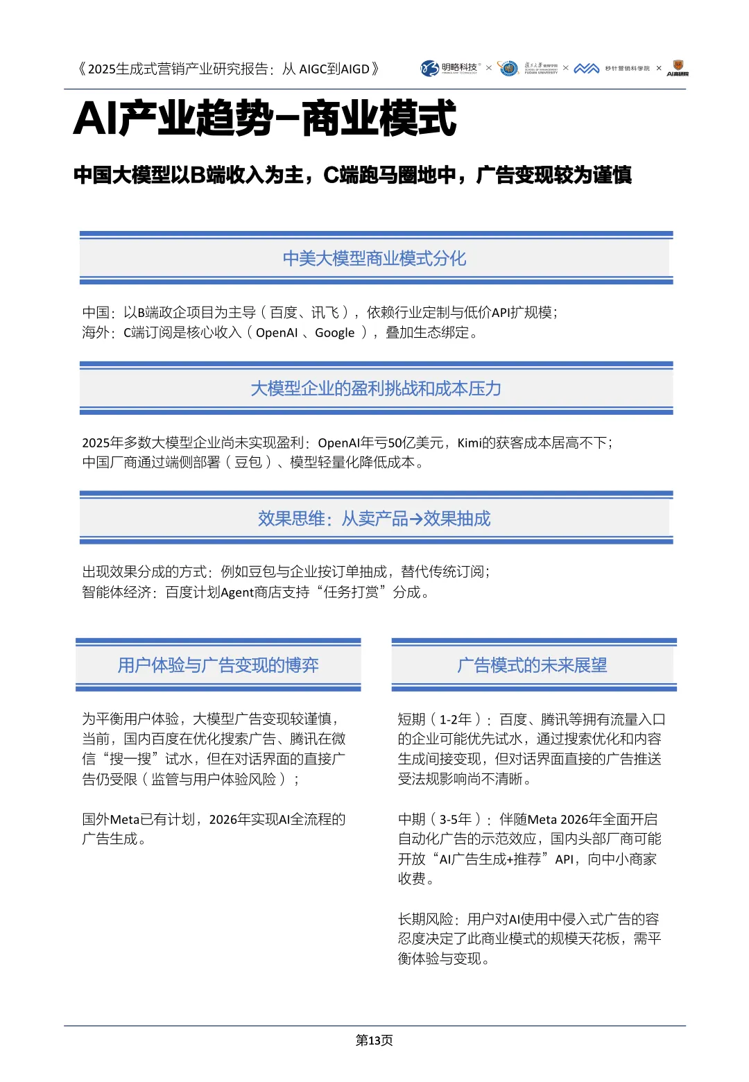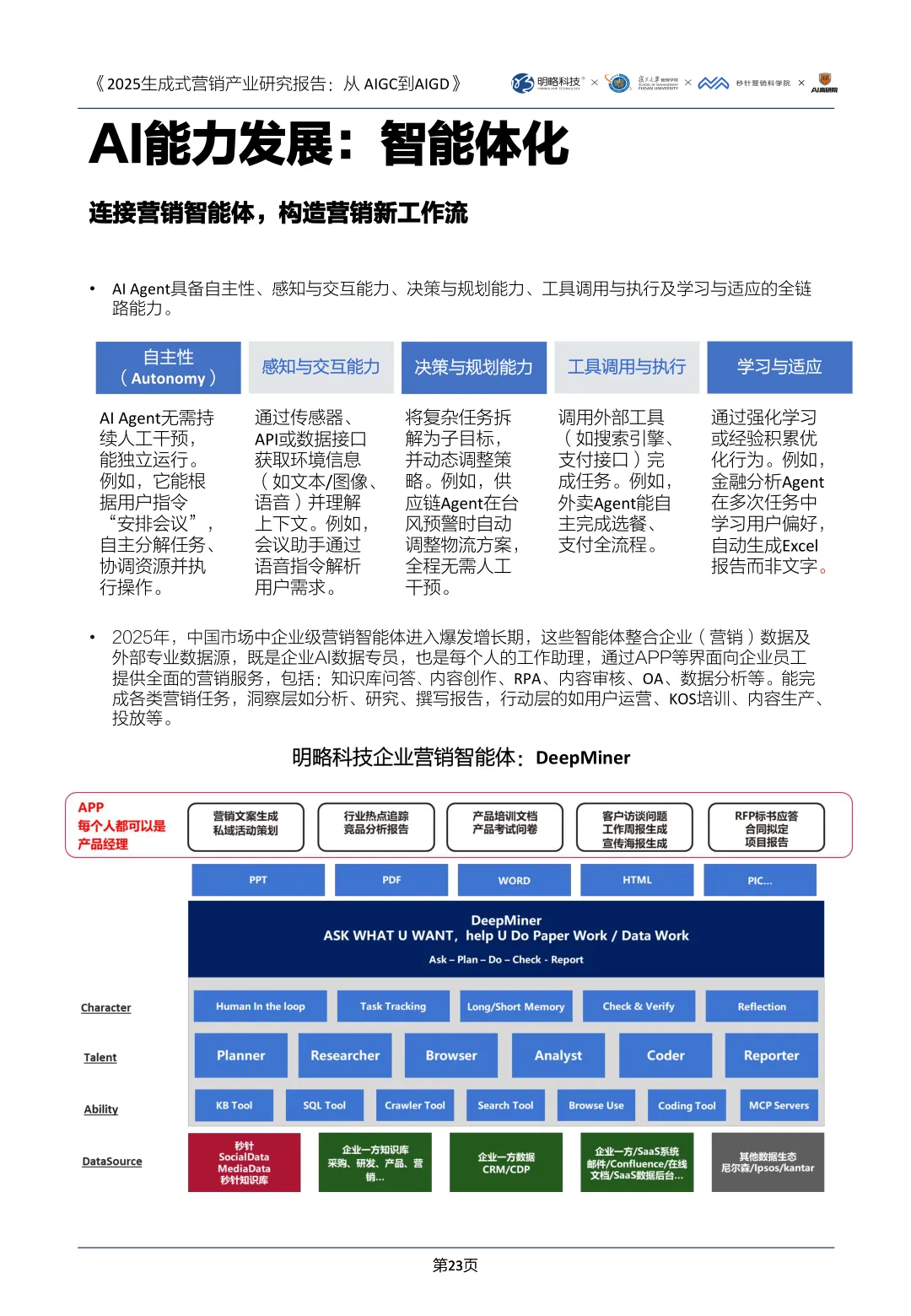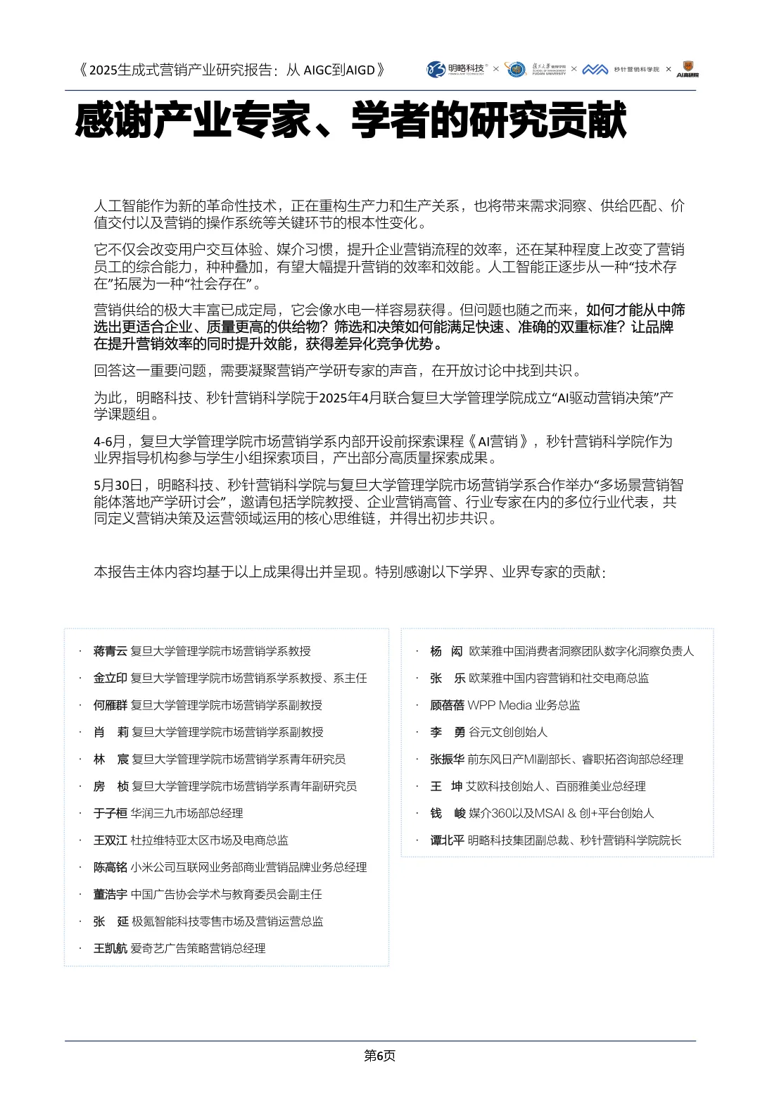 今日推荐行业研究报告:2025生成式营销产业研究报告:从 AIGC到AIGD-(内容出品方:复旦管院×明略科技×秒针营销科学)点击上方图片进入小程序top行业报告首页搜索“生成式营销”查阅下载全文。