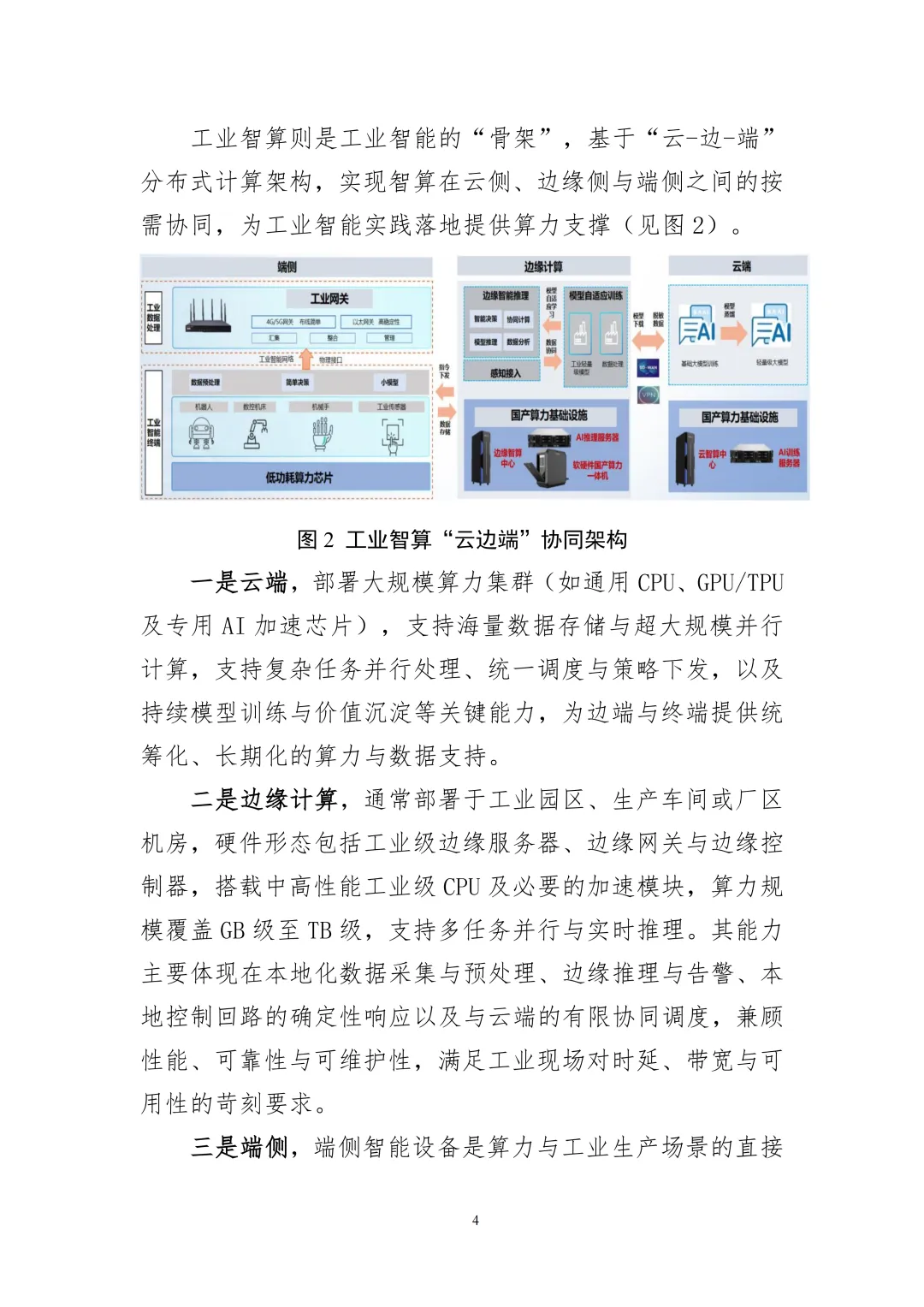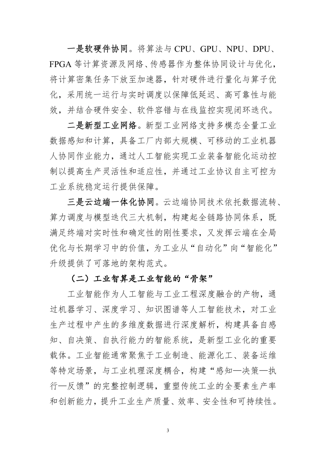 工业智算作为第四次工业革命背景下工业数字化、智能化转型的核心支撑,是人工智能与工业技术场景深度融合的产物,贯穿设计、生产、管理、服务等全工业环节。其本质是通过 CPU、GPU、NPU 等大规模异构算力资源,构建 “云 - 边 - 端” 一体化融合智能计算体系,为工业智能终端、网络控制、边缘计算及智能化应用提供算力、数据、算法和模型支撑,核心特征体现为软硬件协同、新型工业网络支撑、云边端一体化协同。
