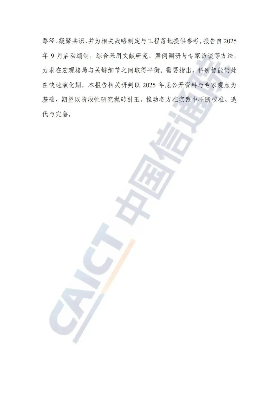 本报告旨在系统梳理科研智能的发展背景、政策举措、关键技术体系与典型应用,服务政府部门、科研机构与产业界把握趋势、识别路径、凝聚共识,并为相关战略制定与工程落地提供参考。报告自2025年9月启动编制,综合采用文献研究、案例调研与专家访谈等方法,力求在宏观格局与关键细节之间取得平衡。需要指出,科研智能仍处在快速演化期,本报告相关研判以2025年底公开资料与专家观点为基础,期望以阶段性研究抛砖引玉,推动各方在实践中不断校准、迭代与完善。